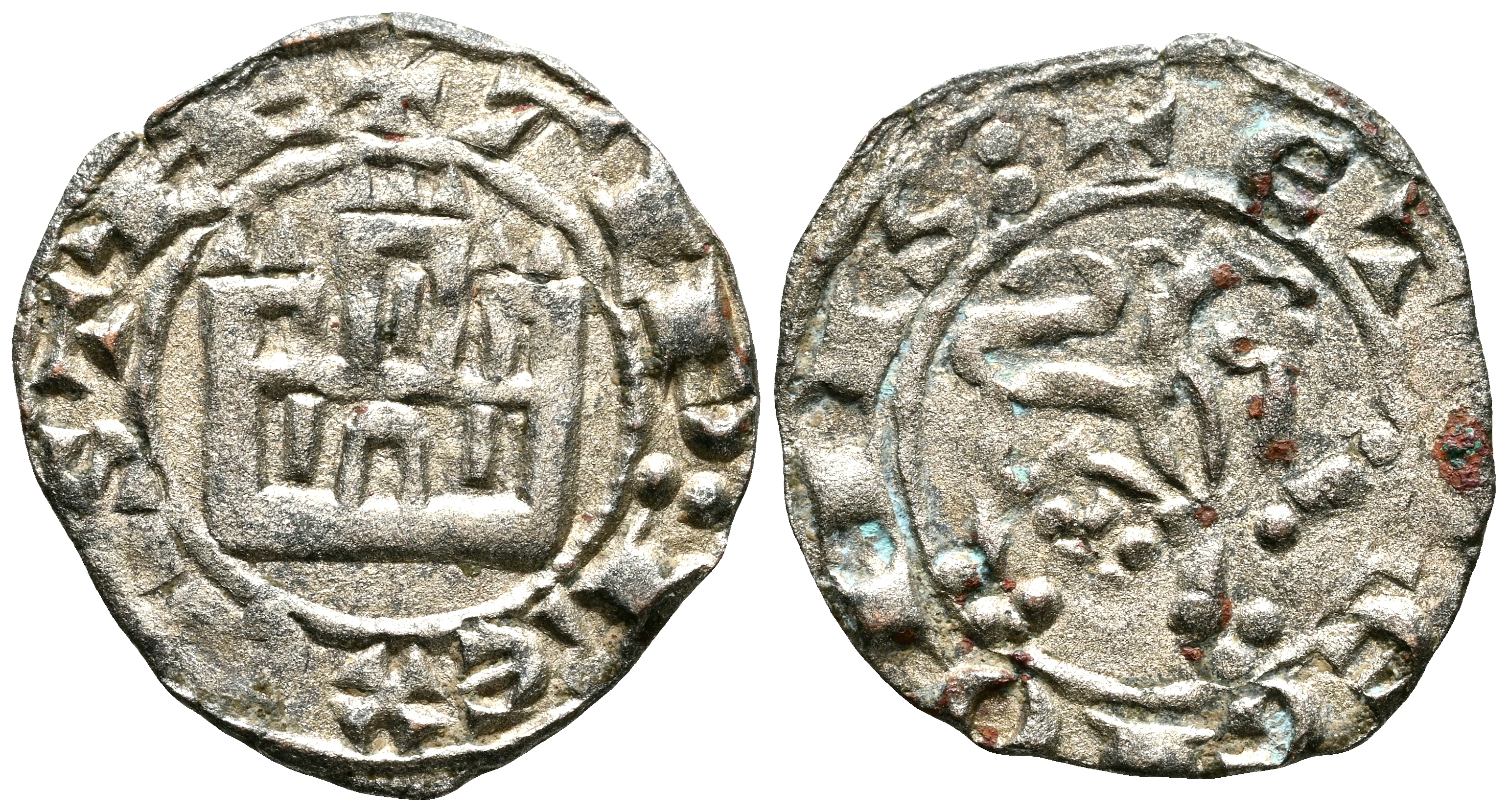 ALFONSO X (1252-1284). Dinero Prieto. (Ve. 0,73g/16mm). Sin marca de ceca. (FAB-276). Anv: Castillo dentro de gráfila circular, alrededor leyenda: ALF REX CASTEL. Rev: León a derecha dentro de gráfila circular, alrededor leyenda: ET LEGIONIS. MBC+.