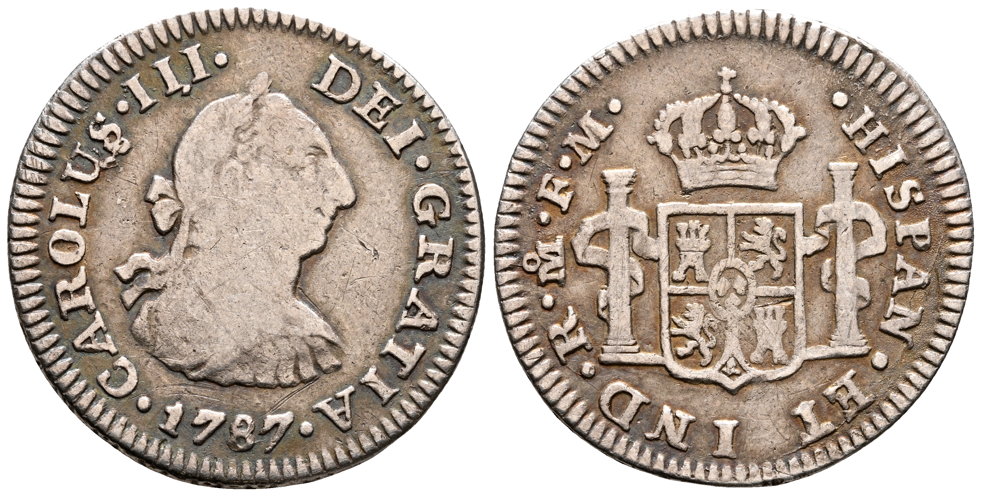 CARLOS III (1759-1788). 1/2 Real. (Ar. 1,63g/17mm). 1787. México FM. (Cal-2019-216). MBC.