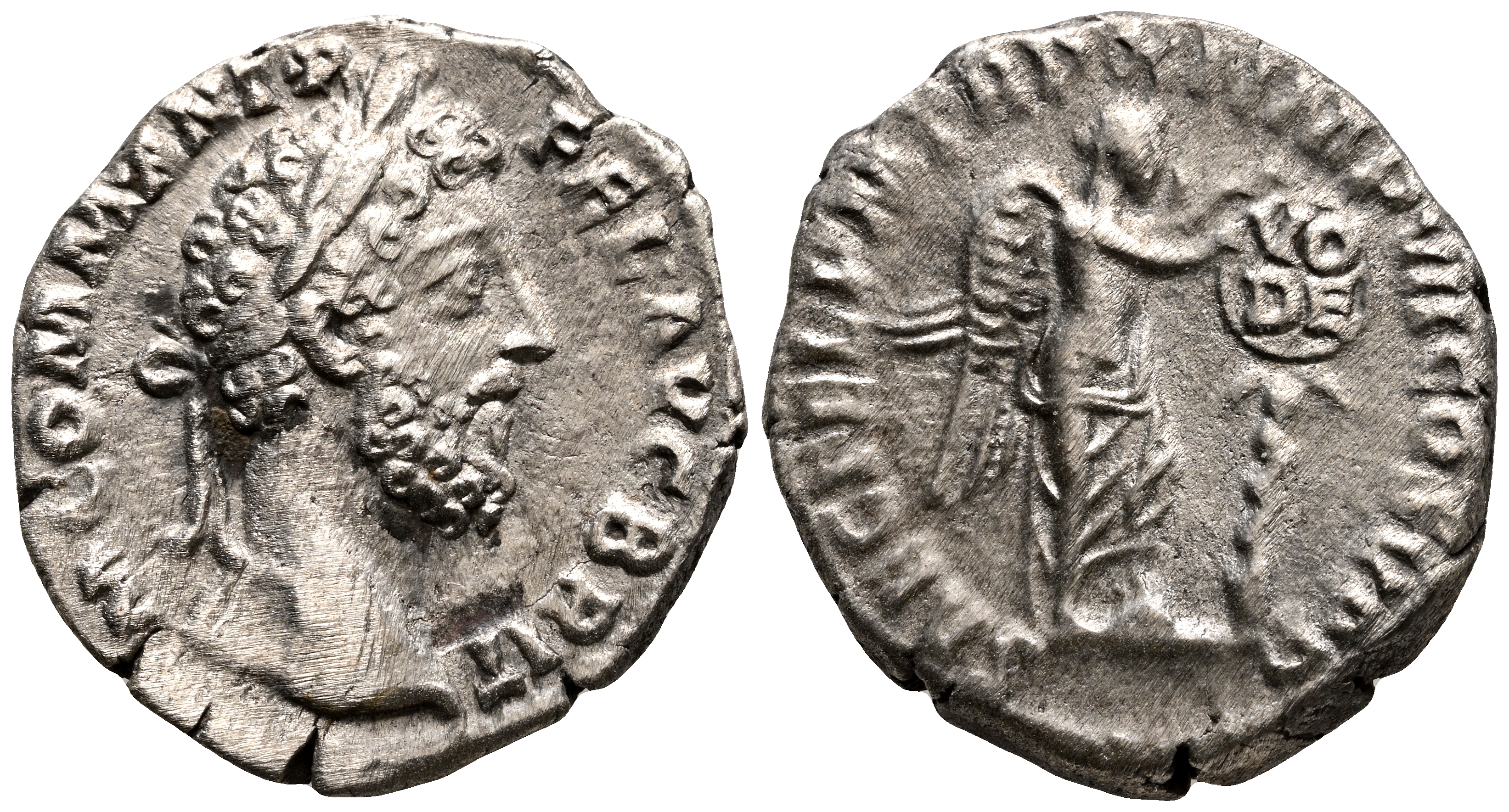 COMODO. Denario. (Ar. 3,40g/18mm). 186 d.C. Roma. (RIC 136). Anv: Cabeza laureada de Cómodo a derecha, alrededor leyenda: M COMM ANT P FEL AVG BRIT. Rev: Victoria estante a derecha, inscribiendo en escudo sobre palma: VO/DE, alrededor leyenda: SAEC FEL P M TR P XI IMP VII COS V P P. MBC.