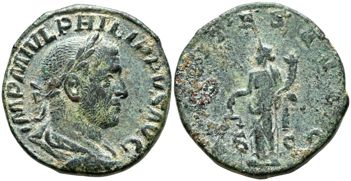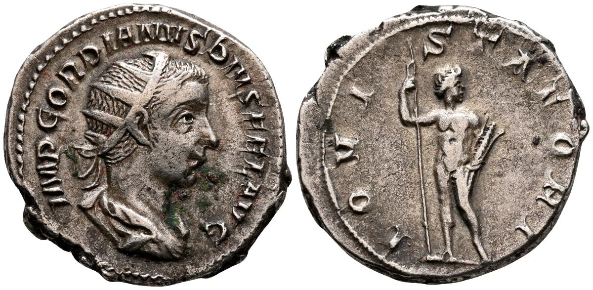 GORDIANO III. Sestericio. (Ae. 16,68g/31mm). 241-244 D.C. Roma. (RIC 298a). Anv: Busto laureado, drapeado y acorazado de Gordiano III a la derecha, alrededor leyenda: IMP GORDIANVS PIVS FEL AVG. Rev: Júpiter desnudo y estante de frente con cabeza a la derecha, portando cetro, entre: S-C, alrededor leyenda: IOVI STATORI. MBC/MBC-.