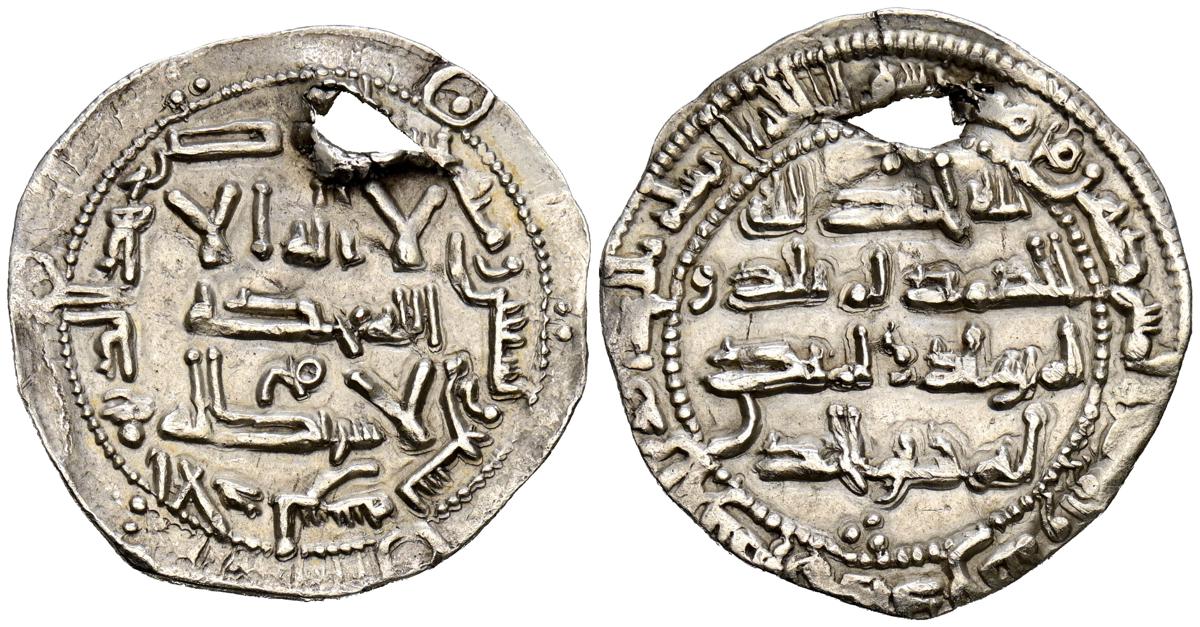 EMIRATO INDEPENDIENTE DE CÓRDOBA. Al-Hakam I. Dirham. (Ar. 2,25g/26mm). 196H. al-Ándalus / الاندلس. (Vives 99; Frochoso 196.13). EBC-. Precioso y curioso ejemplar con añadido de peso y gran parte de su brillo original principalmente en anverso.
