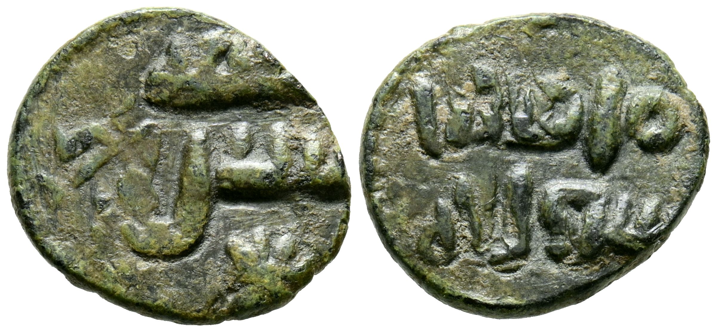 EMIRATO DEPENDIENTE DE CÓRDOBA, PERIODO DE GOBERNADORES. Anónimo. Felús. (Ae. 2,47g/17mm). S/D. (Frochoso XI-a). Anv: ''Se contribuye al servicio de Dios''. Rev: رسواالله / محمد (Muhammad enviado de Dios). MBC+. Raro y atractivo ejemplar.