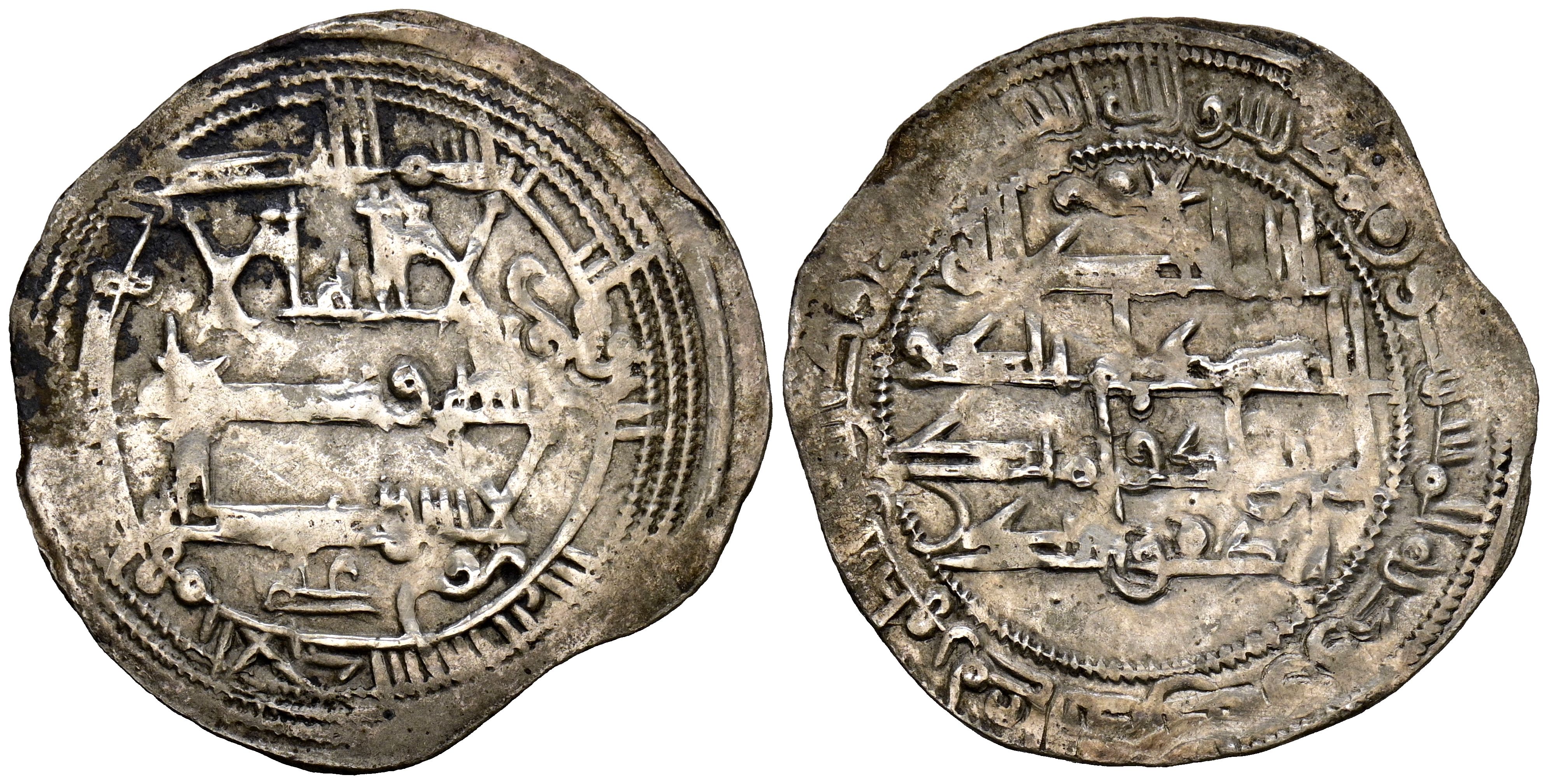 EMIRATO INDEPENDIENTE DE CÓRDOBA. Muhammad I. Dirham. (Ar. 2,52g/28mm). 260H. al-Ándalus / الاندلس. (Vives 283; Frochoso 260.44-47). Citando a Ali / علي en IA. MBC. Escasa.