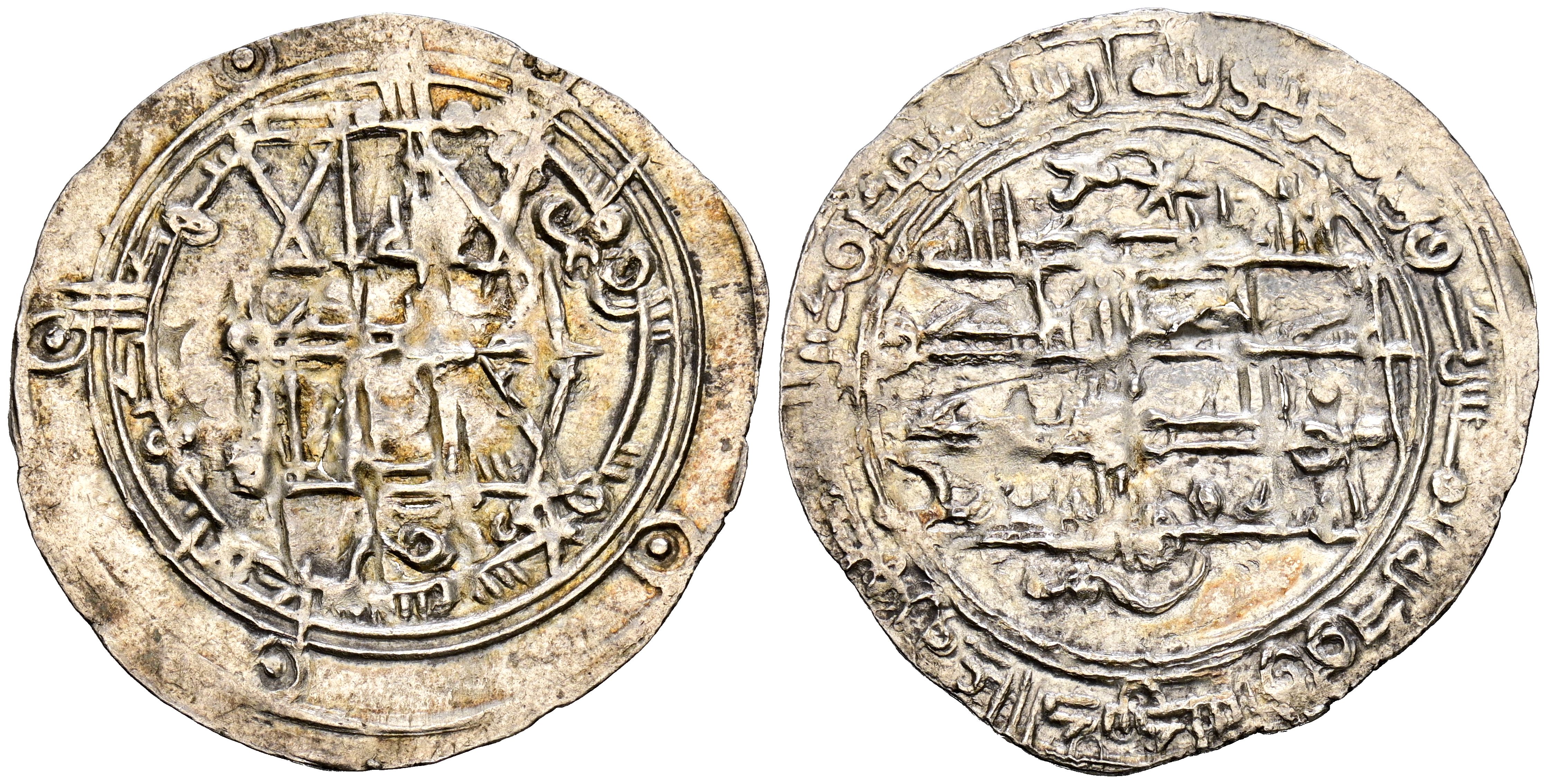 EMIRATO INDEPENDIENTE DE CÓRDOBA. Muhammad I. Dirham. (Ar. 2,64g/32mm). 267H. al-Ándalus / الاندلس. (Vives 308 (3º acuñación); Adornos no recogidos para este año en Frochoso). MBC+. Pátina antigua de monetario.