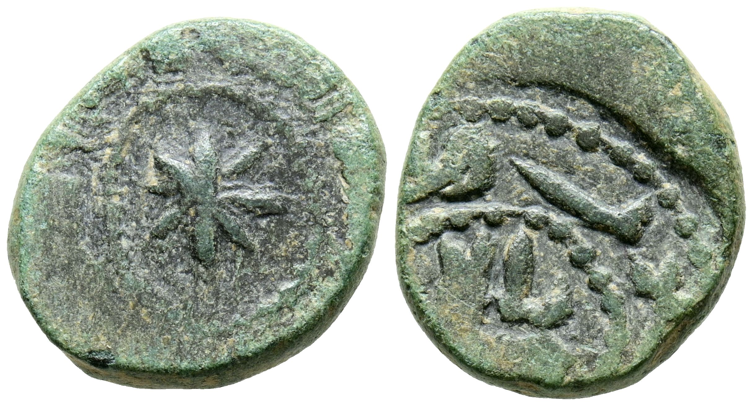 EMIRATO DEPENDIENTE DE CÓRDOBA, PERIODO DE GOBERNADORES. Anónimo. Felús. (Ar. 5,22g/18mm). S/D. al-Ándalus / الاندلس. (Vives 44; Frochoso XVII-b). Anv: Estrella de 8 puntas dentro de gráfila circular, alrededor Profesión de Fé,'Sahada'. Rev: ندلس/ ال ا, dentro de gráfila circular, alrededor 'Basmala'. MBC-.
