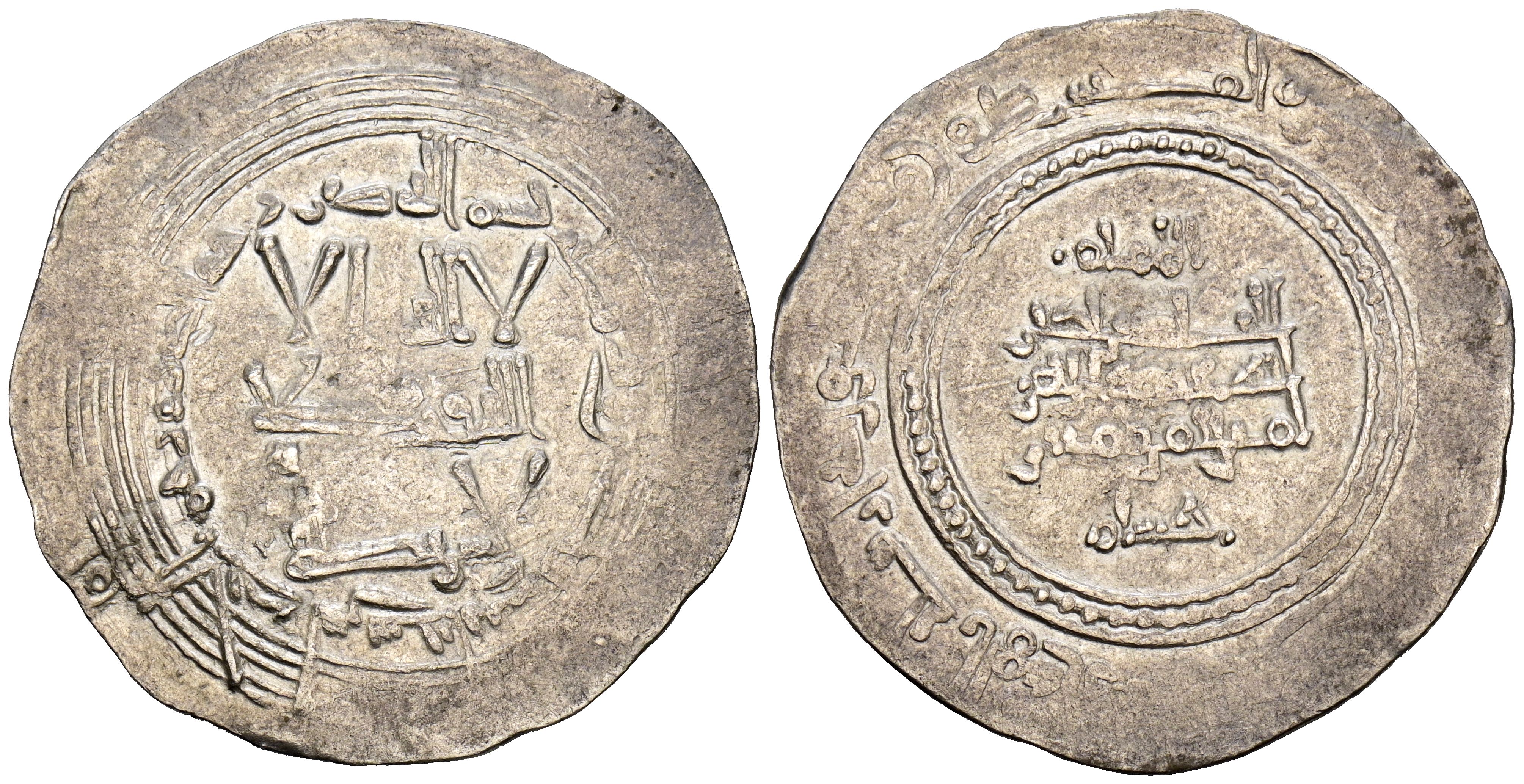 CALIFATO DE CÓRDOBA. 'Abd al-Rahman III. Dirham. (Ar. 3,12g/29mm). 334H. al-Ándalus / الاندلس. (Vives 408; Frochoso 334.17). Citando a Hišām / حشام en IA. MBC. Módulo grande. Escaso y atractivo ejemplar.