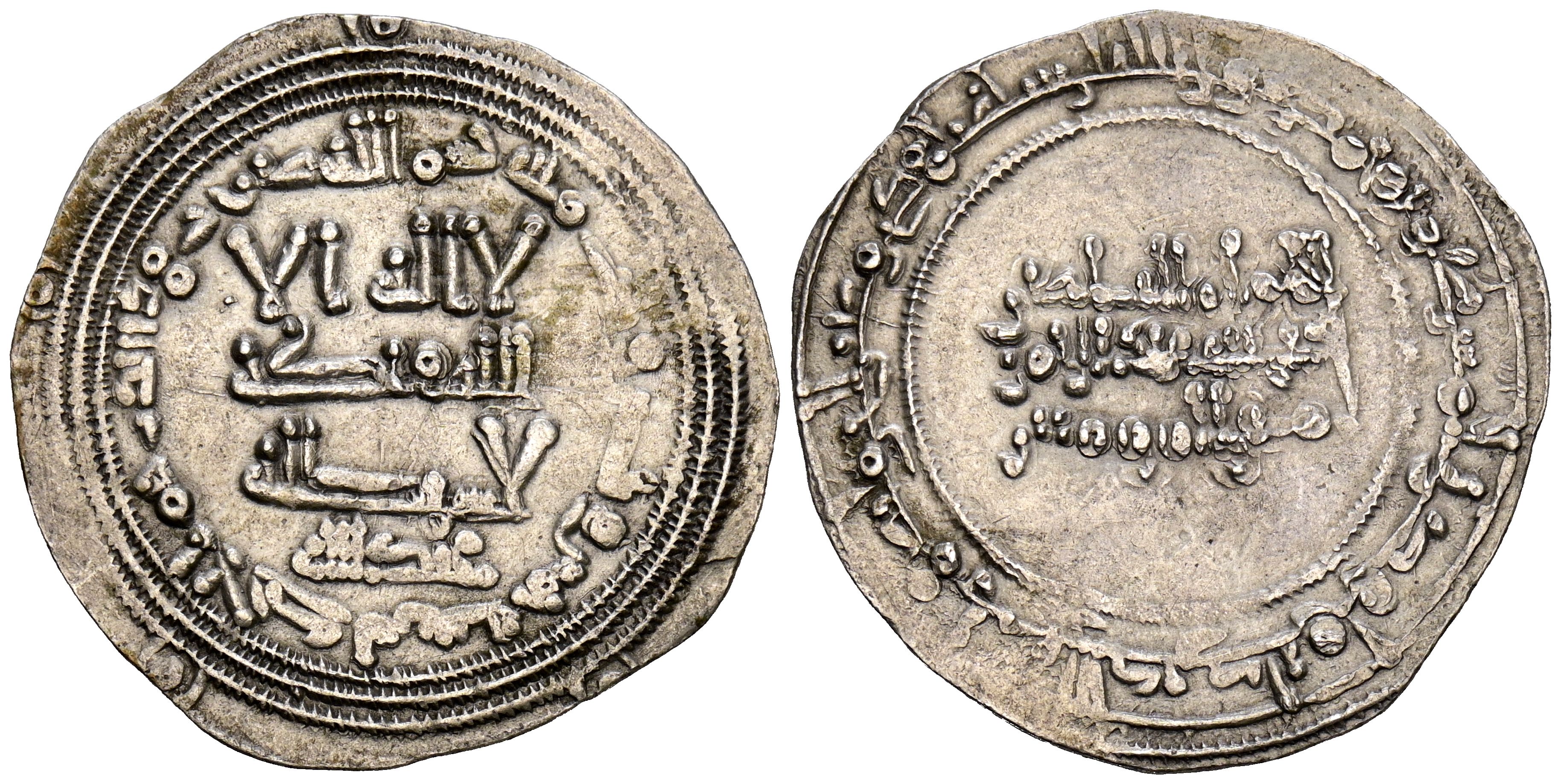 CALIFATO DE CÓRDOBA. 'Abd al-Rahman III. Dirham. (Ar. 2,78g/26mm). 335H. al-Ándalus / الاندلس. (Vives 411; Frochoso 335.17). Citando a 'Abd Allāh / عبداللة en IA. MBC.