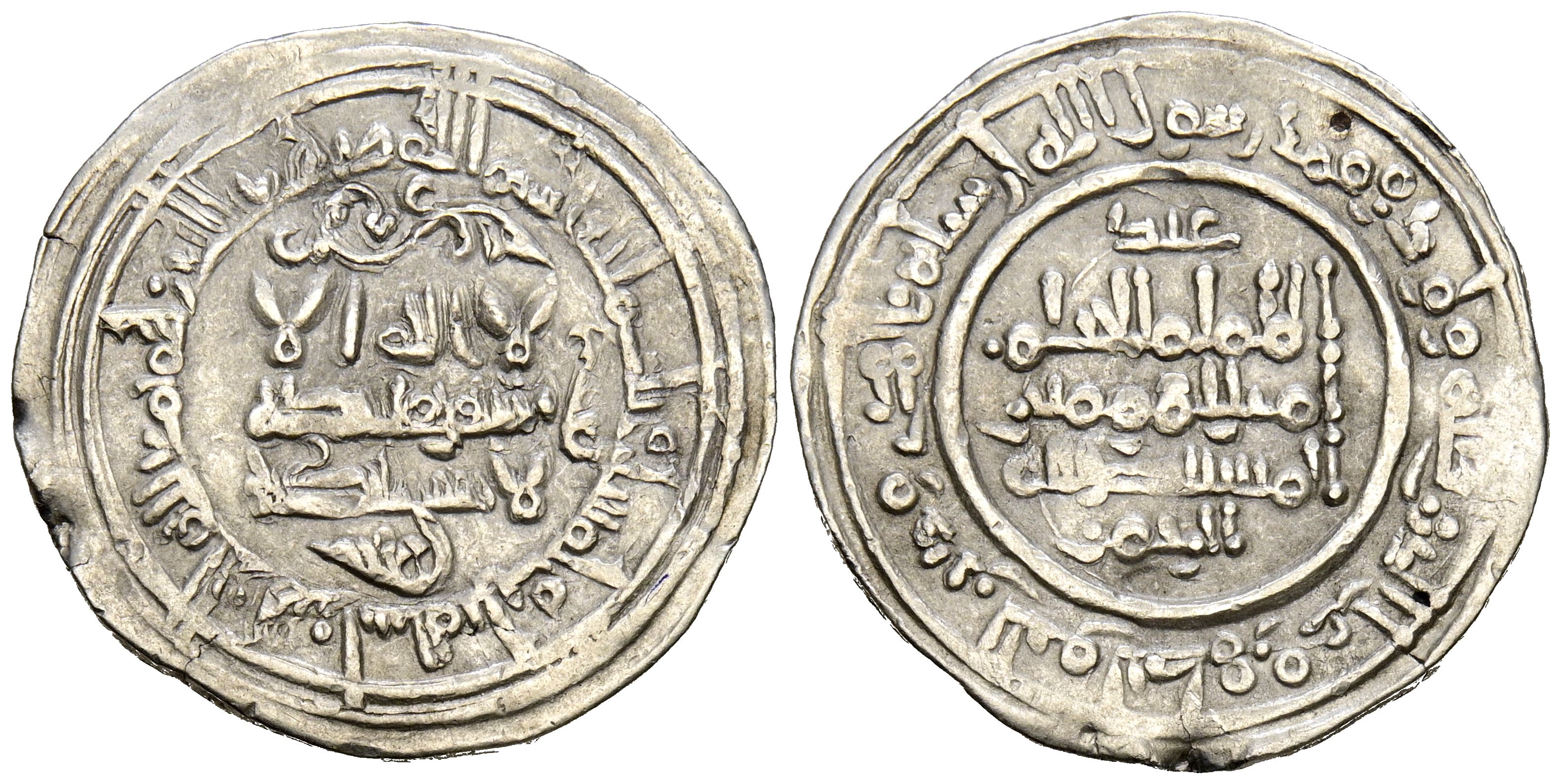 CALIFATO DE CÓRDOBA, Al-Hakam II. Dirham. (Ar. 2,65g/22mm). 353H. Madinat al-Zahra / مدينة الزهرا. (Vives 451; Frochoso 353.25). Citando a 'Abd al-Rahman / الرحمن / عبد en IIA. MBC+.