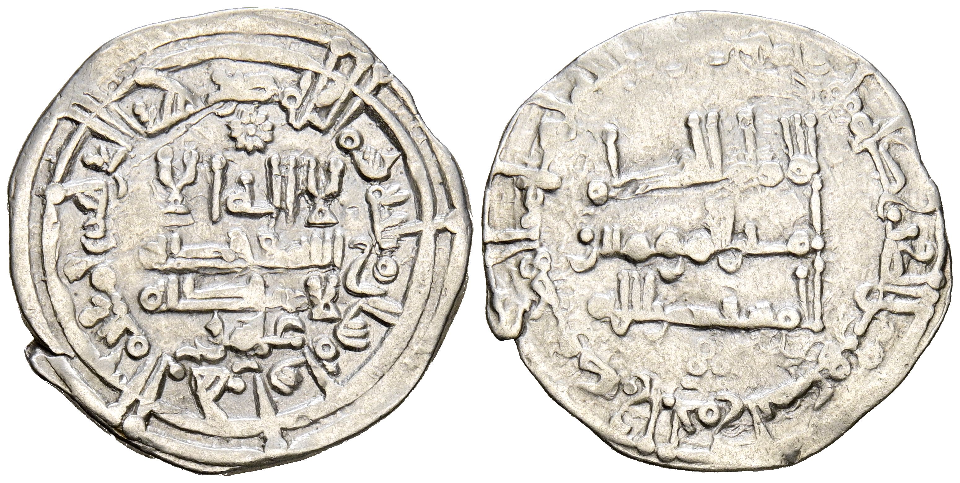 CALIFATO DE CÓRDOBA, Al-Hakam II. Dirham. (Ar. 2,64g/22mm). 360H. Madinat al-Zahra / مدينة الزهرا. (Vives 461; Frochoso 360.75). Citando a 'Āmir / عامر en IA. MBC+/MBC. Interesante y rara variante sin gráfila interna en IIA.