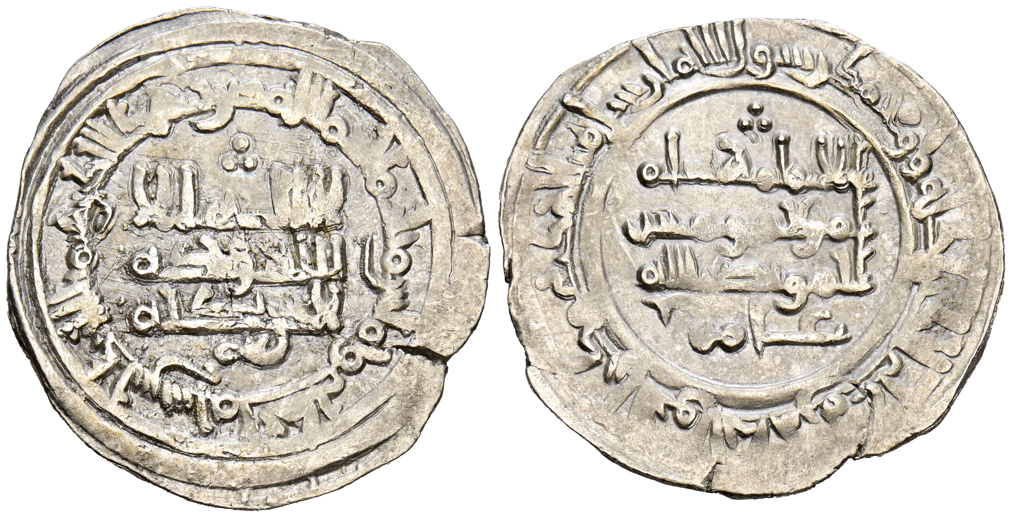 CALIFATO DE CÓRDOBA, Hisham II. Dirham. (Ar. 3,29g/25mm). 381H. al-Ándalus / الاندلس. (Vives 514; Frochoso 381.29). Citando a 'Āmir / عامر en IIA. MBC. Cospel abierto.