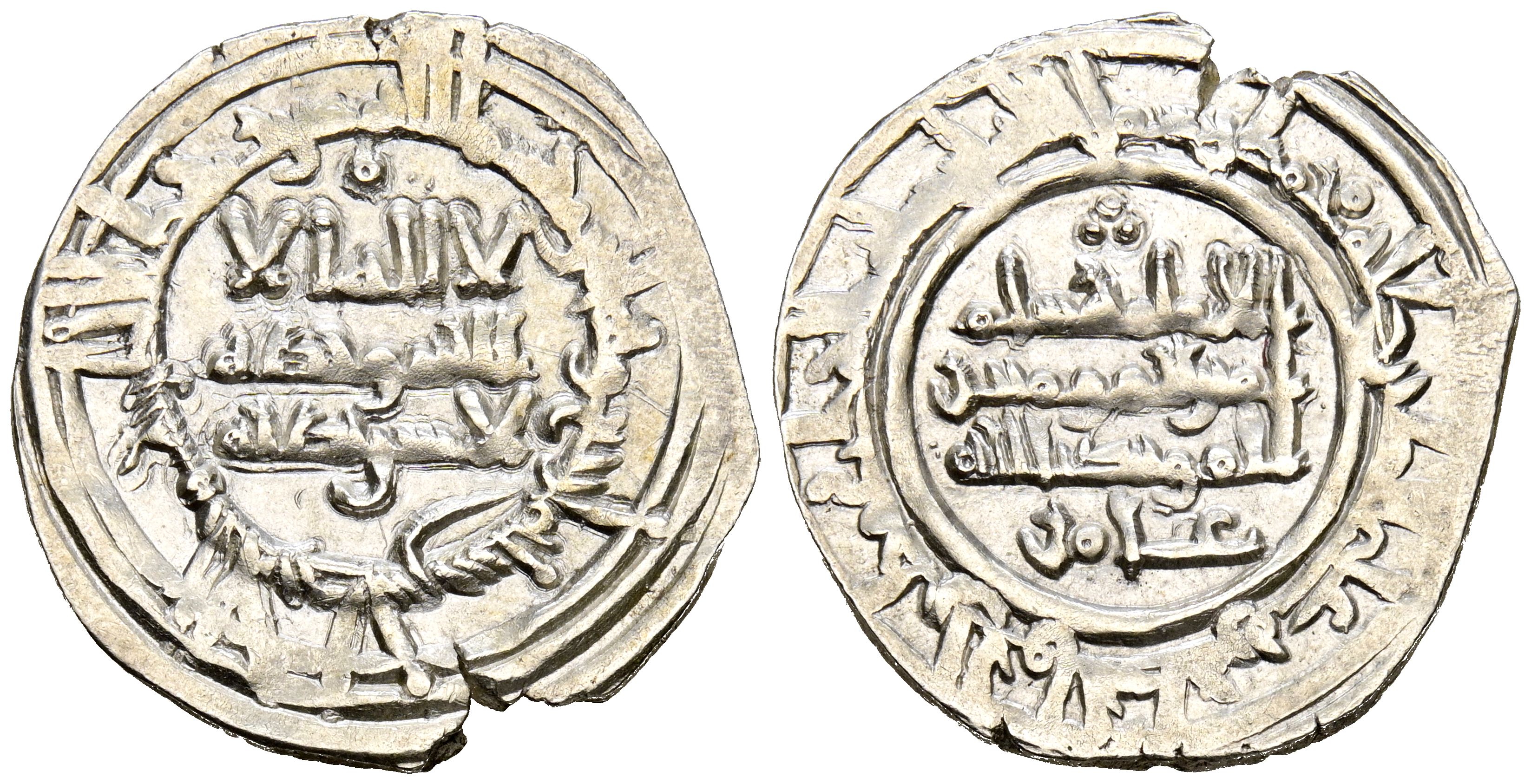 CALIFATO DE CÓRDOBA, Hisham II. Dirham. (Ar. 3,25g/23mm). 384H. al-Ándalus / الاندلس. (Vives 519; Frochoso no cita esta combinación de adornos). Citando a 'Āmir / عامر en IIA. MBC+.