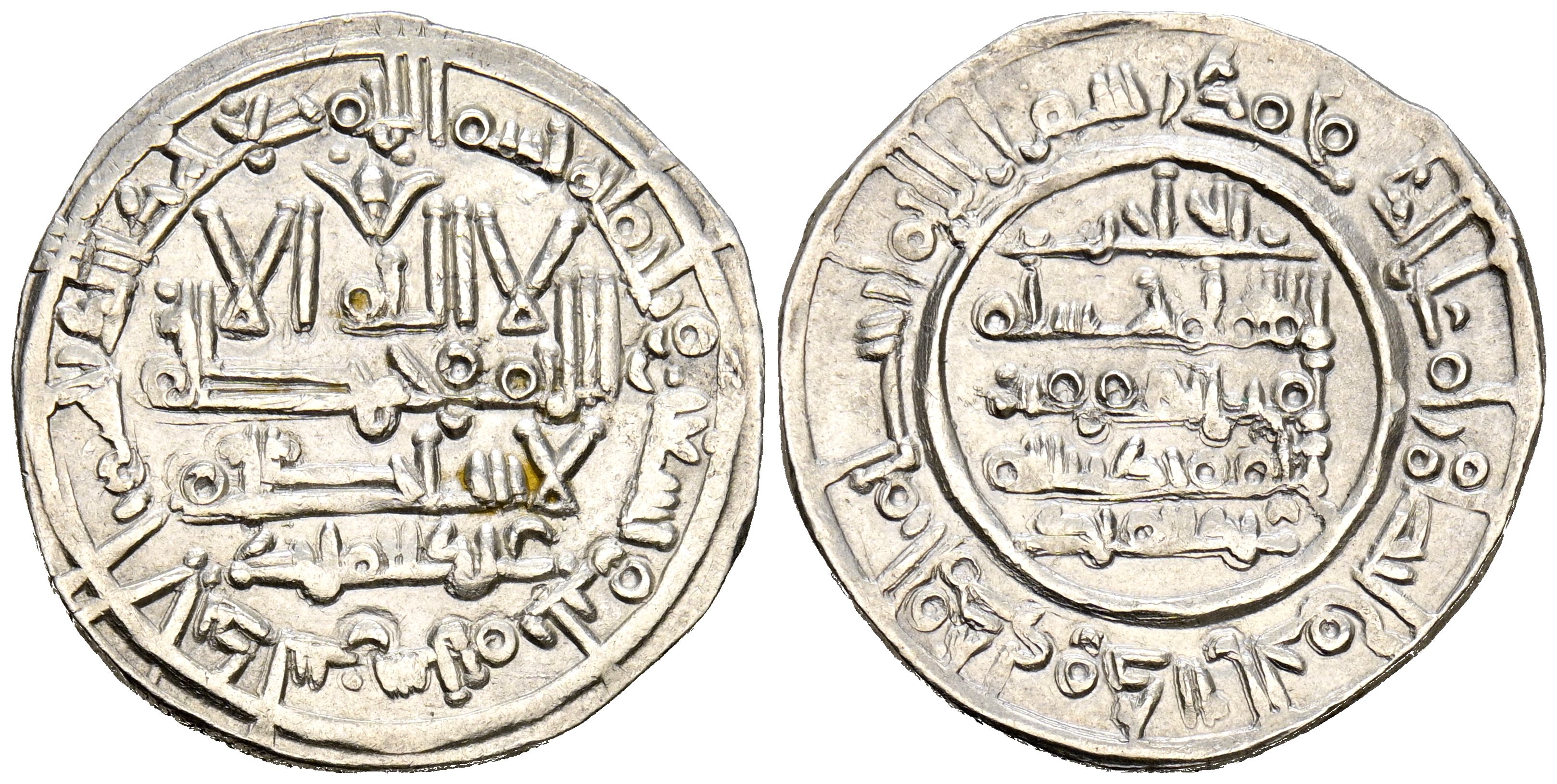 CALIFATO DE CÓRDOBA, Hisham II. Dirham. (Ar. 3,03g/23mm). 393H. al-Ándalus / الاندلس. (Vives 577; Frochoso 393.48). Citando a 'Abd al-Malik / عبد الملك en IA. y al-Hāŷib 'Abd al-Malik / عبد الملك / الحاجب en IIA. MBC+.