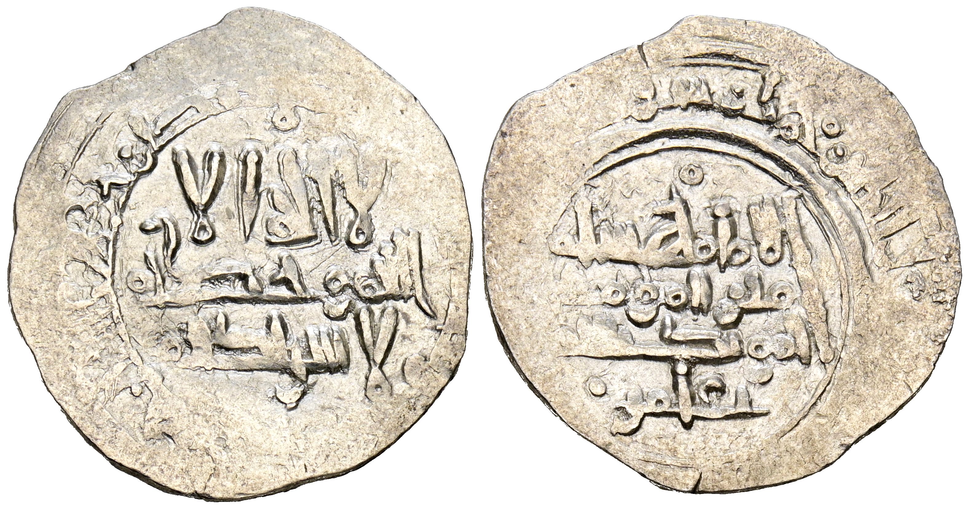 CALIFATO DE CORDOBA, Hisham II. Dirham. (Ar. 2,90g/23mm). Fecha y ceca no visibles, aun asi indiscutible acuñación de Madinat Fas (Fez) / مدينة فاس. (hacia 377-392H). Citando a ‘Āmir / عامر en IIA. BC+.