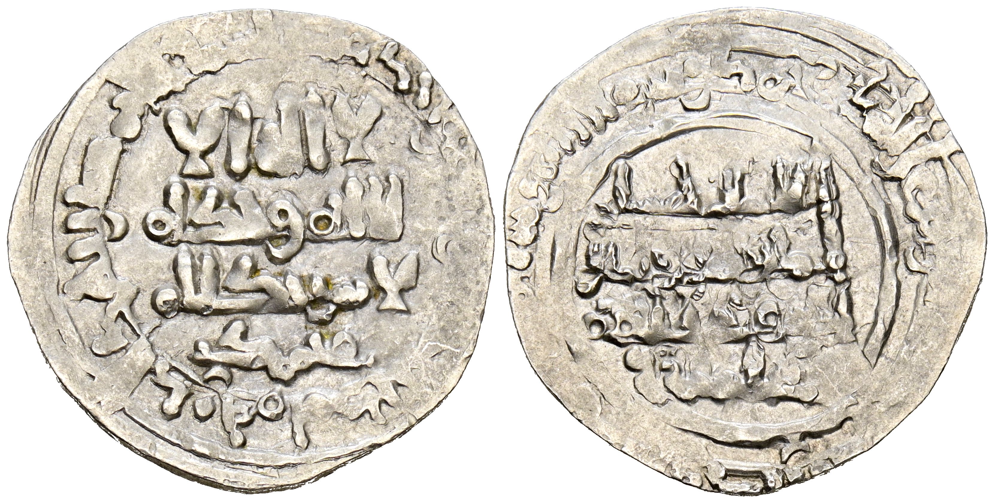 CALIFATO DE CÓRDOBA, Hisham II. Dirham. (Ar. 2,48g/23mm). 391H. Madinat Fas (Fez) / مدينة فاس. (Vives 627). Citando a Muhammad / محمد en IA. y 'Āmir / عامر en IIA. MBC. Vanos de acuñación. Escasa.