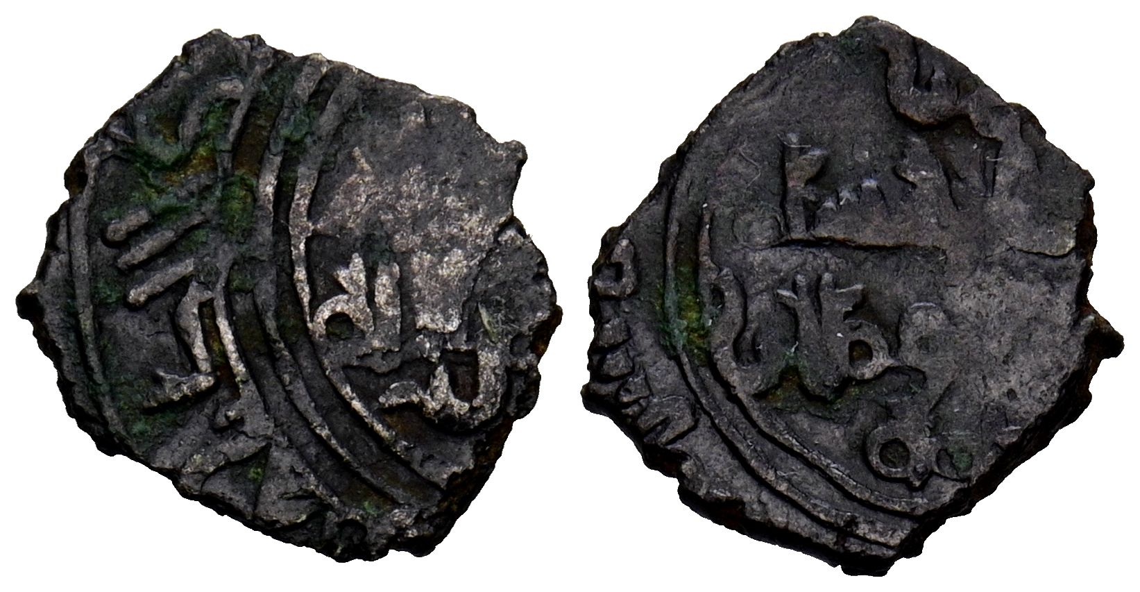 TAIFAS DEL CALIFATO, ALPUNTE (Banu al-Qasim). Ahmad, Yumn al-Dawla. (Ar. 0,55g/11mm). 421-434H. (Prieto 349). MBC. Muy Rara.Prieto atribuye este tipo a Muhammad ibn 'Abd Allah, quien gobernó entre el 421-434H, basándose en el título Yum al-Dawla en la IIA. Ex Soler y Llach, Subasta 1106 (18/12/2018), Nº Lote 85.