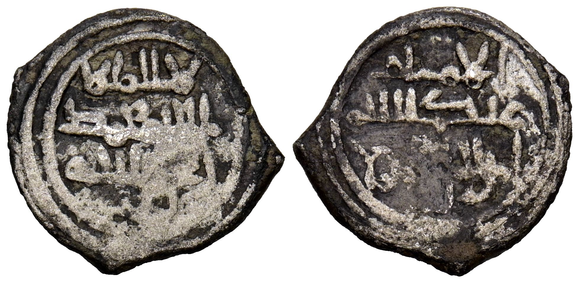 TAIFAS DEL CALIFATO, CORDOBA. Anonimo, atribuido a los Banu Yahwar. Fracción de dirham. (Ar. 0,83g/14mm). 422-462 H. (Vives 1398; Prieto 437b; Medina 118). A nombre del imam Abd Allah. MBC-. Rara.Ex Ibercoin, Subasta online 23 (03/10/2018), Nº Lote 323.