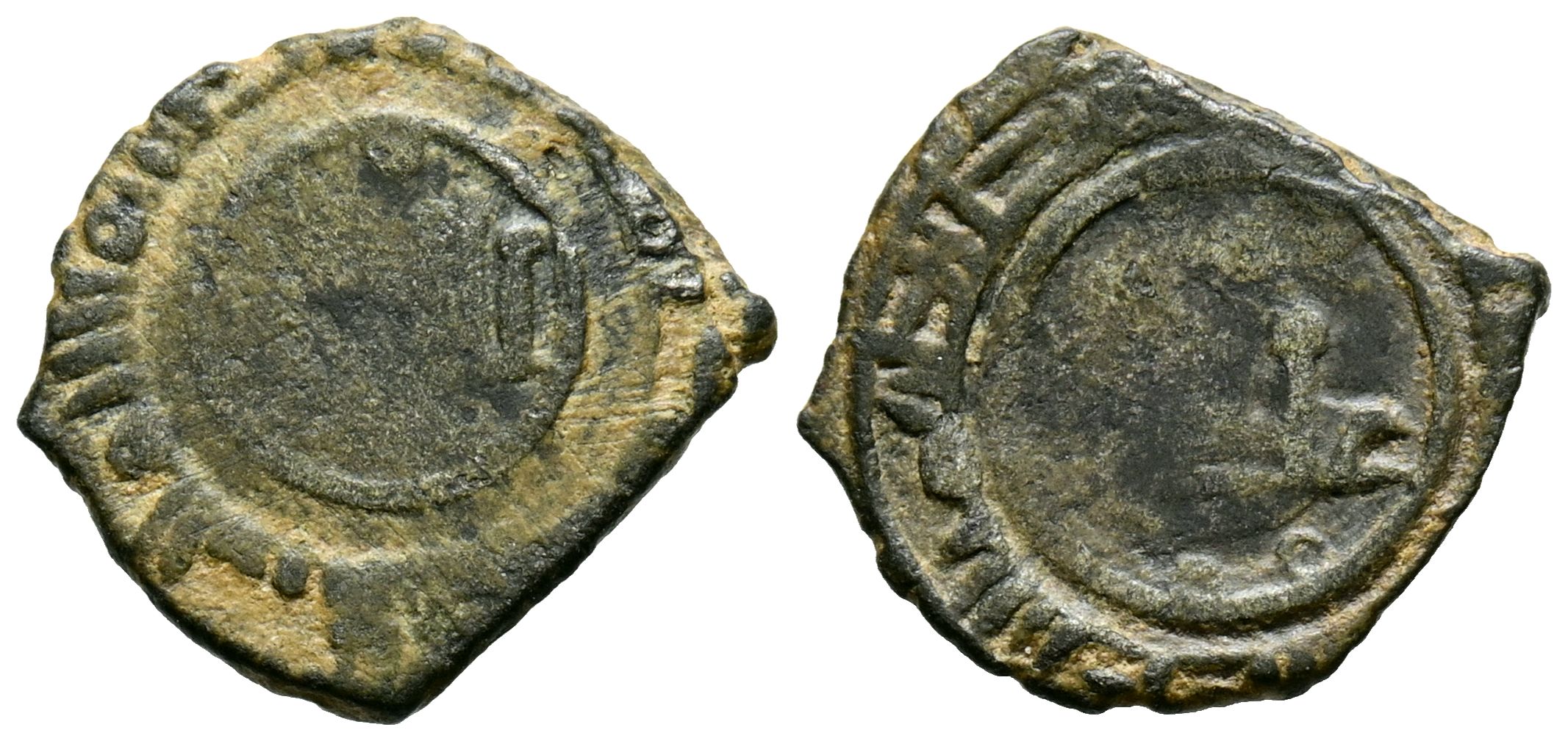 TAIFAS DEL CALIFATO, CÓRDOBA. Anónima atribuída a los Banu Djahwar (422-462H). Fracción de Dirham. (Ve. 0,98g/15mm). S/D. (Francés 356-61; Frochoso BY12-foto 30 (OMNI 05-2014, p. 200-201). A nombre del Imam Abd Allah. MBC. Interesante ejemplar con p arte de la orla visible.