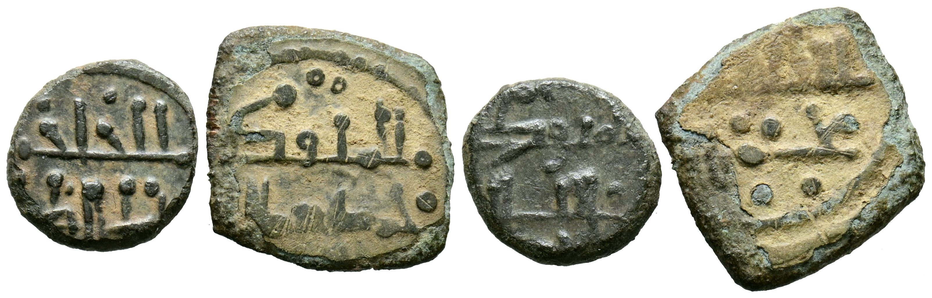 TAIFAS DEL CALIFATO, BADAJOZ (Aftasíes). Umar al-Mutawakkil Abu Hasfs. (460-487H). Interesante pareja de dirhams fraccionarios/handus. Diferentes variantes, medidas y estados de conservación. A EXAMINAR.