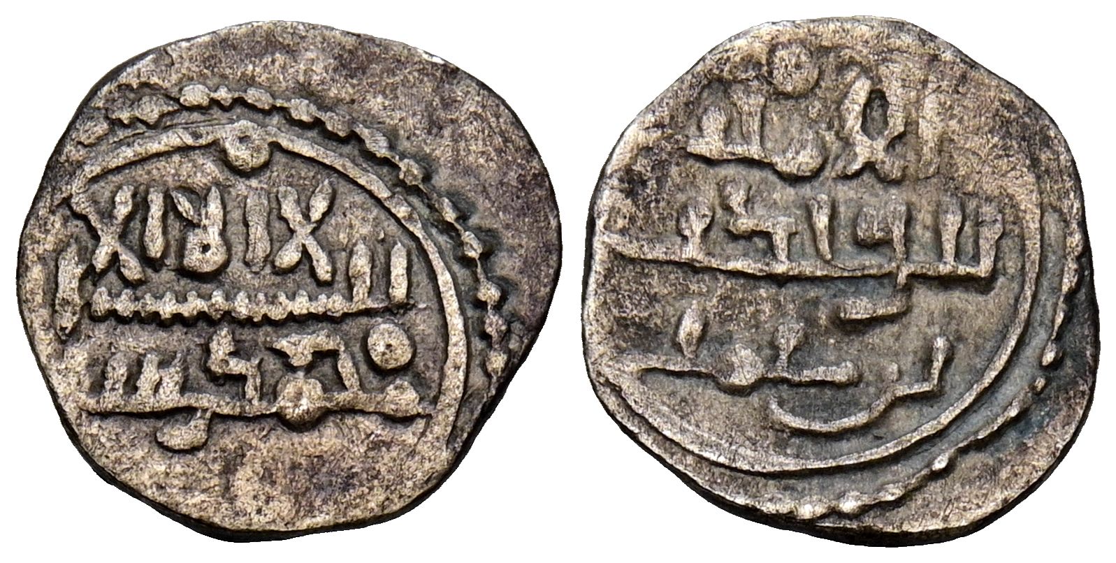 ALMORAVIDES, Abu Bakr ben `Umar (450-480H). Quirate. (Ar. 0,42g/11mm). S/D. (Benito A1; Vives 1443; Hazard 888). Anv: 'Shahadah' en cuatro líneas. Rev: الامير/ (el Emir)/ابوبكر (Abu Bakr)/بن عمر (hijo de 'Umar). MBC. Escasa.