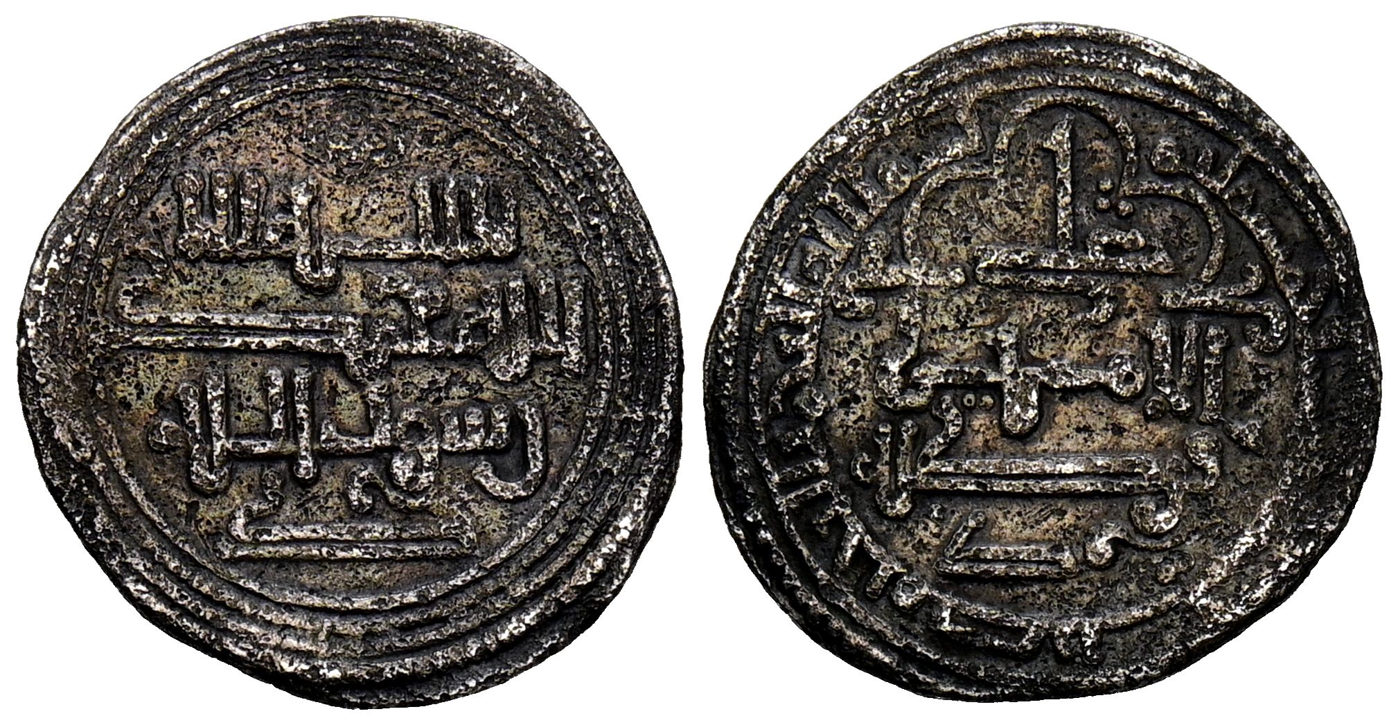 ALMORAVIDES, Ali ben Yusuf (500-537H). Quirate. (Ar. 0,82g/14mm). 506H? Córdoba / قرطبة. (Medina 134; Benito Ca6). Anv: 'Shahadah' en tres líneas. Rev: Presenta en el centro a Ali sin títulos ni herededo, alrededor 'Basmala' con variante de expresión de fecha 'Fi sana': في سنة... En la parte inferior de ambas áreas encontramos la letra: ك aislada. MBC. Porosidad. Rara.