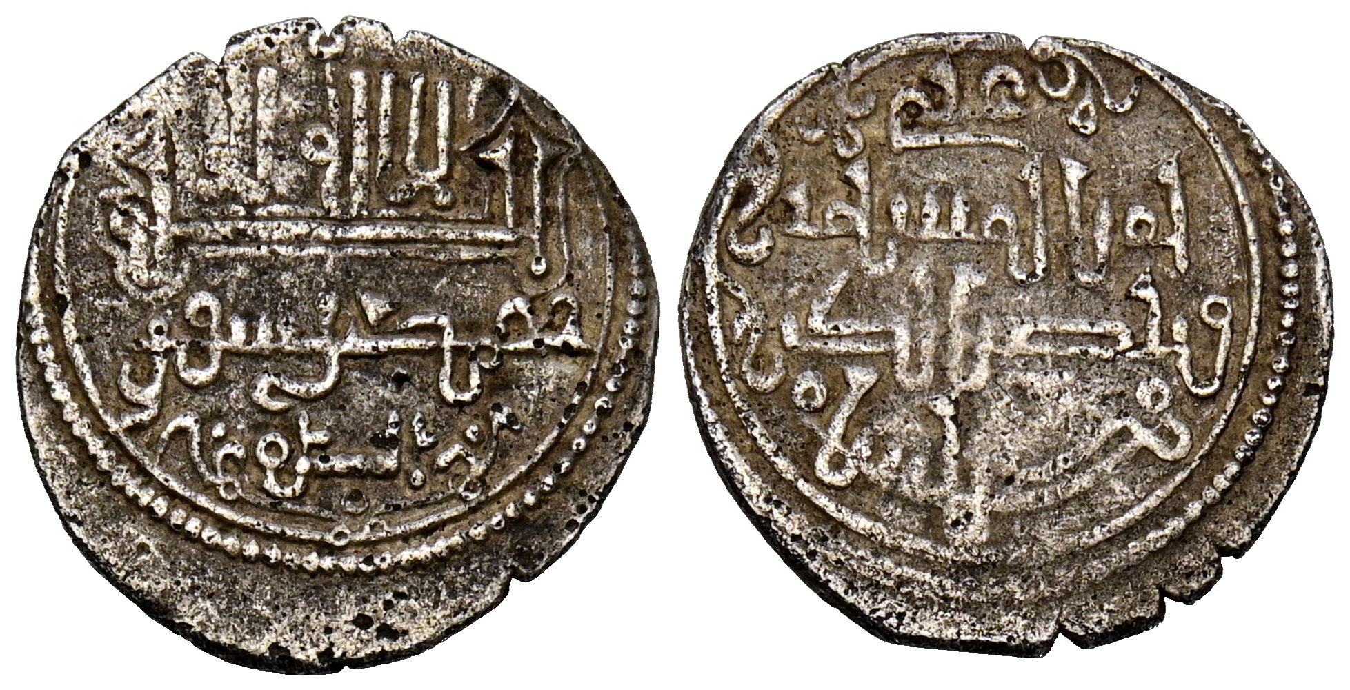 ALMORÁVIDES, Ali Ibn Yusuf (500-537H). Quirate. (Ar. 0,81g/14mm). S/D. Miknasa (Mequinez) / مكـناسة. (Vives 1707, Benito-Cc5). Anv: 'Shahadah' en cuatro líneas. Rev: Presenta a Ali con títulos de Amir al-Muslimin y Nasir al-Din, abajo en semicírculo ceca. MBC. Raro