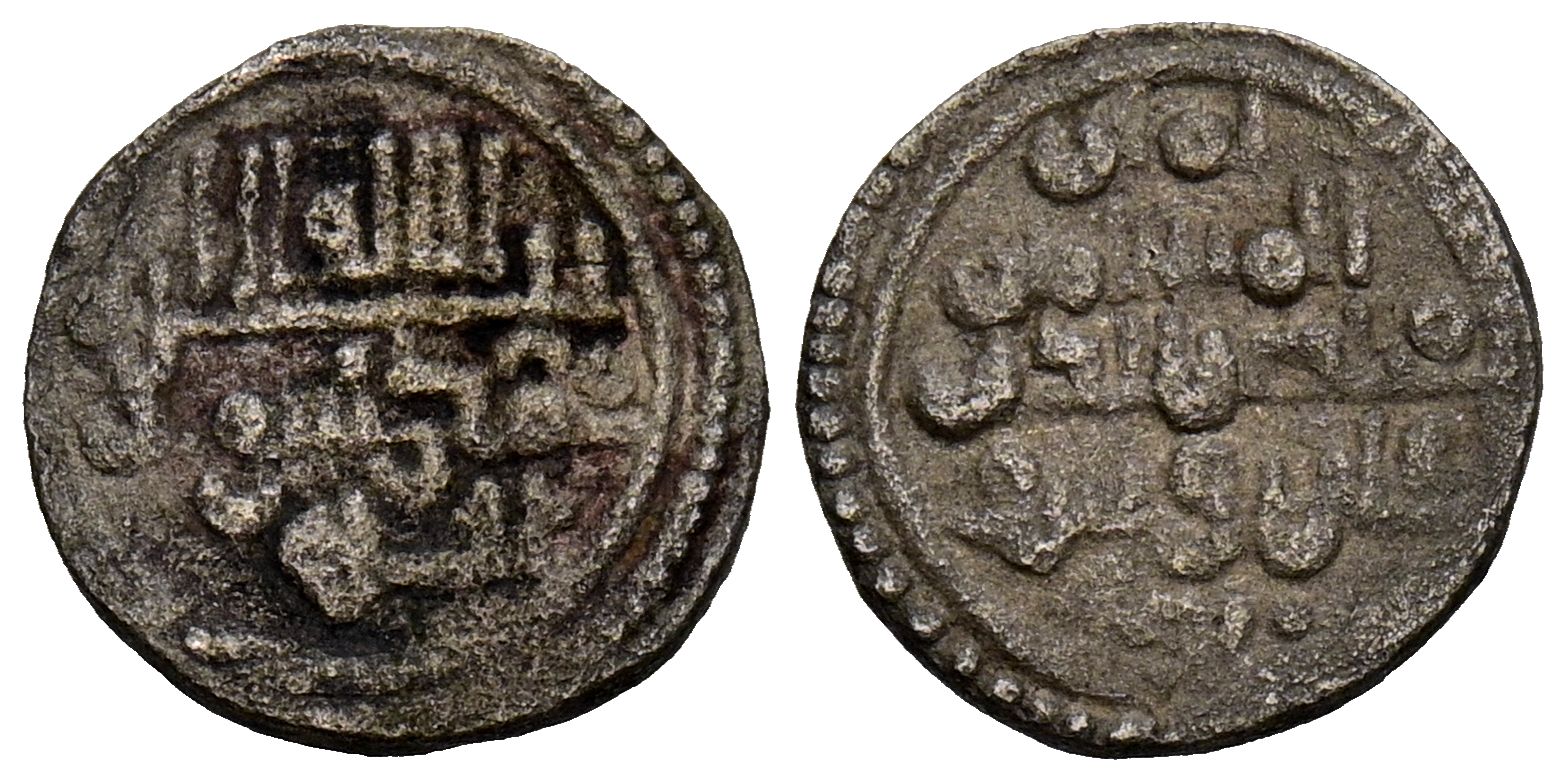 ALMORAVIDES, Alí Ibn Yusuf (500-537H). Quirate. (Ar. 0,65g/10mm). S/D. (Benito Cc10). Anv: 'Shahada' en cuatro líneas. Rev: Presenta a Ali con títulos de Amir al-Muslimin y Nasir al-Din. MBC. Escasa.