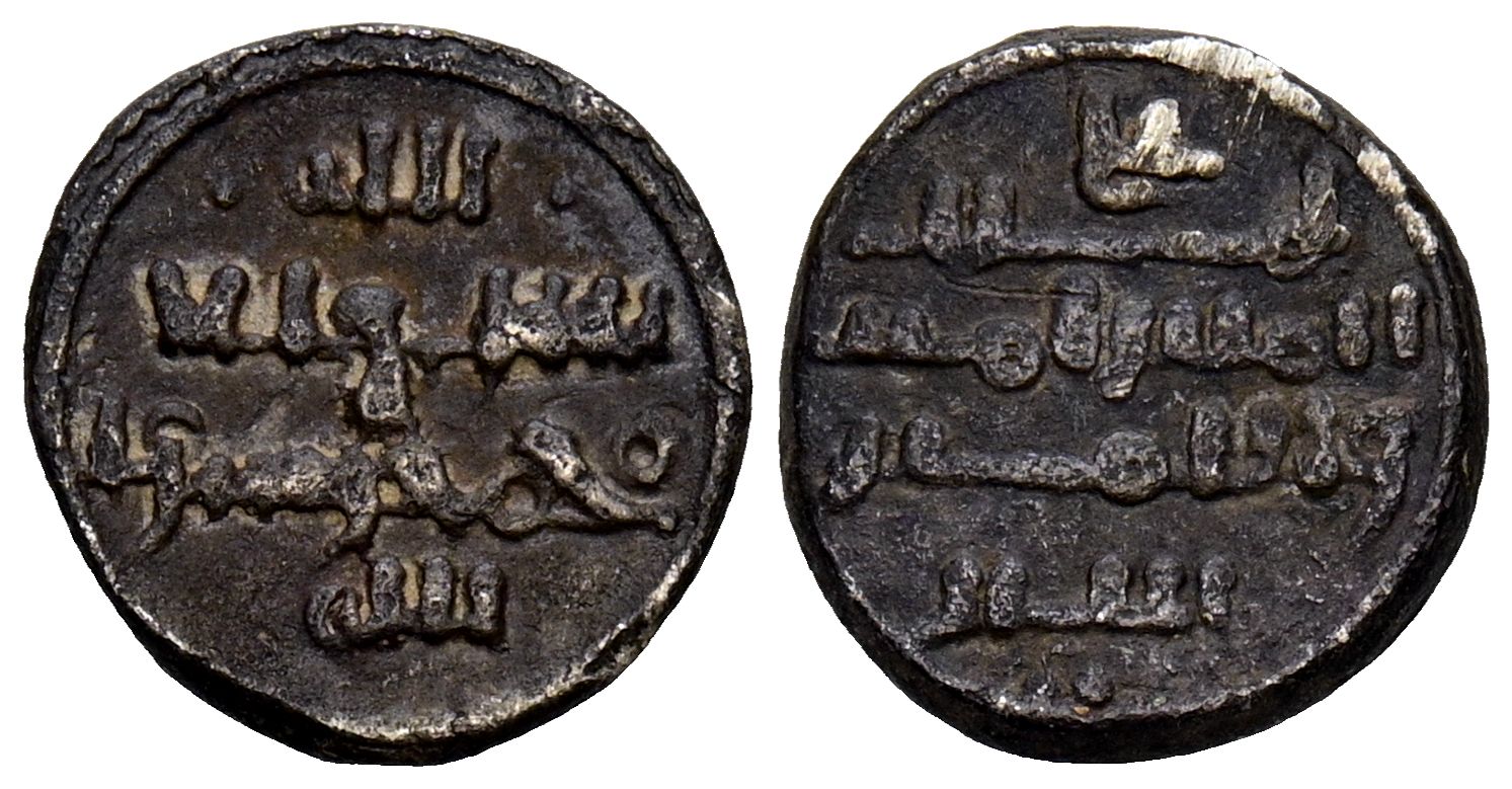 ALMORAVIDES, Alí Ibn Yusuf y el Emir Sïr (522-533H). Quirate. (Ar. 0,75g/10mm). S/D. (Vives 1768; Benito Ce8). Anv: 'Shahada' en cuatro líneas. Rev: Presenta a Ali con títulos de Amir al-Muslimin y Nasir al-Din, debajo en dos líneas mención al herede ro: سير / و الامير. MBC+. Pátina oscura.