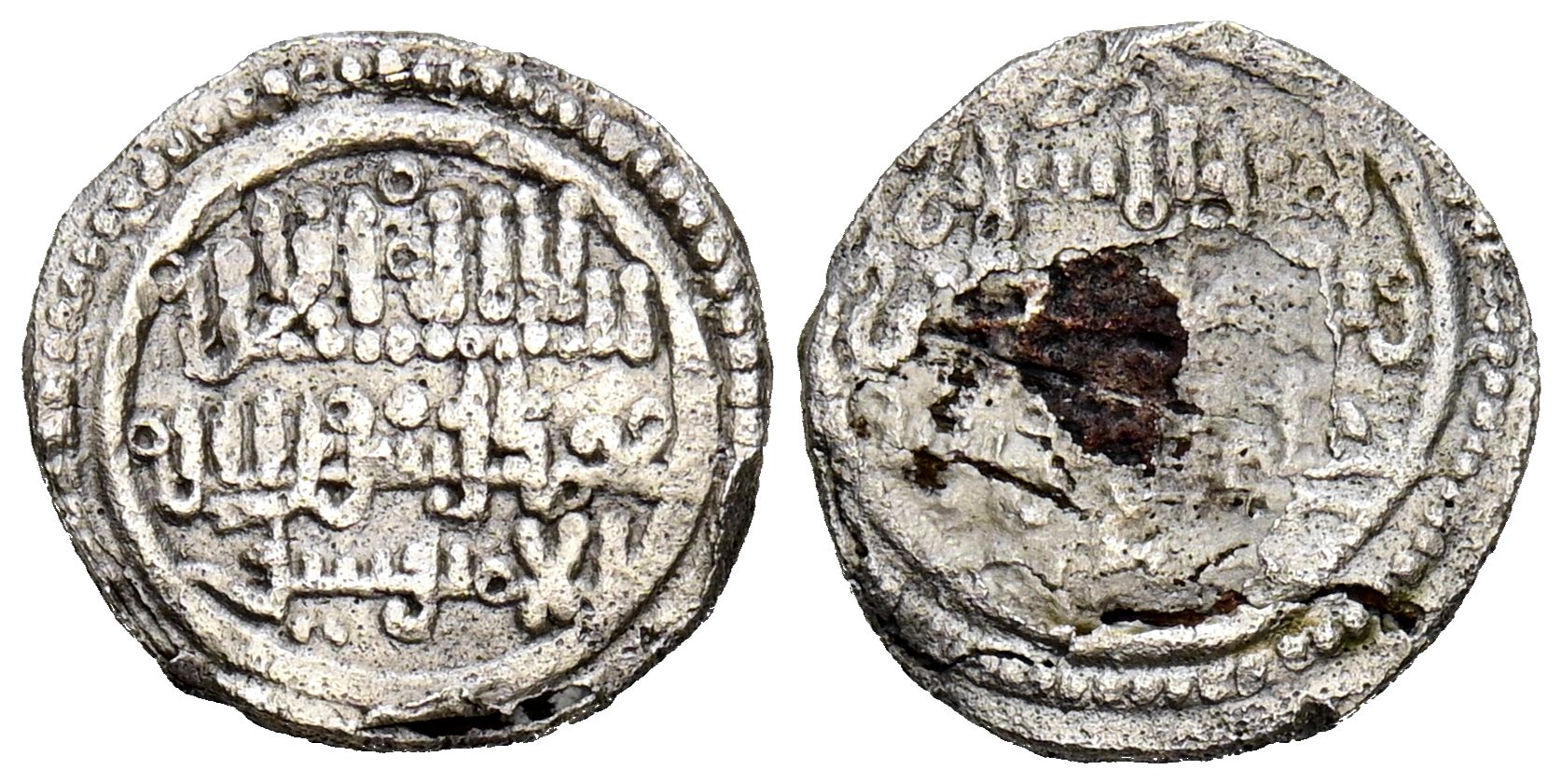 ALMORÁVIDES, Ali Ibn Yusuf y el Emir Sir (522-533H). Quirate forrado. (Ar. 0,67g/11mm). S/D. (Vives 1774; Benito Cf2). Anv: 'Shahada' en tres líneas y mención al heredero: الامير سير. Rev: Presenta a Ali con títulos de Amir al-Muslimin y Nasir al-Din . MBC/MBC-.