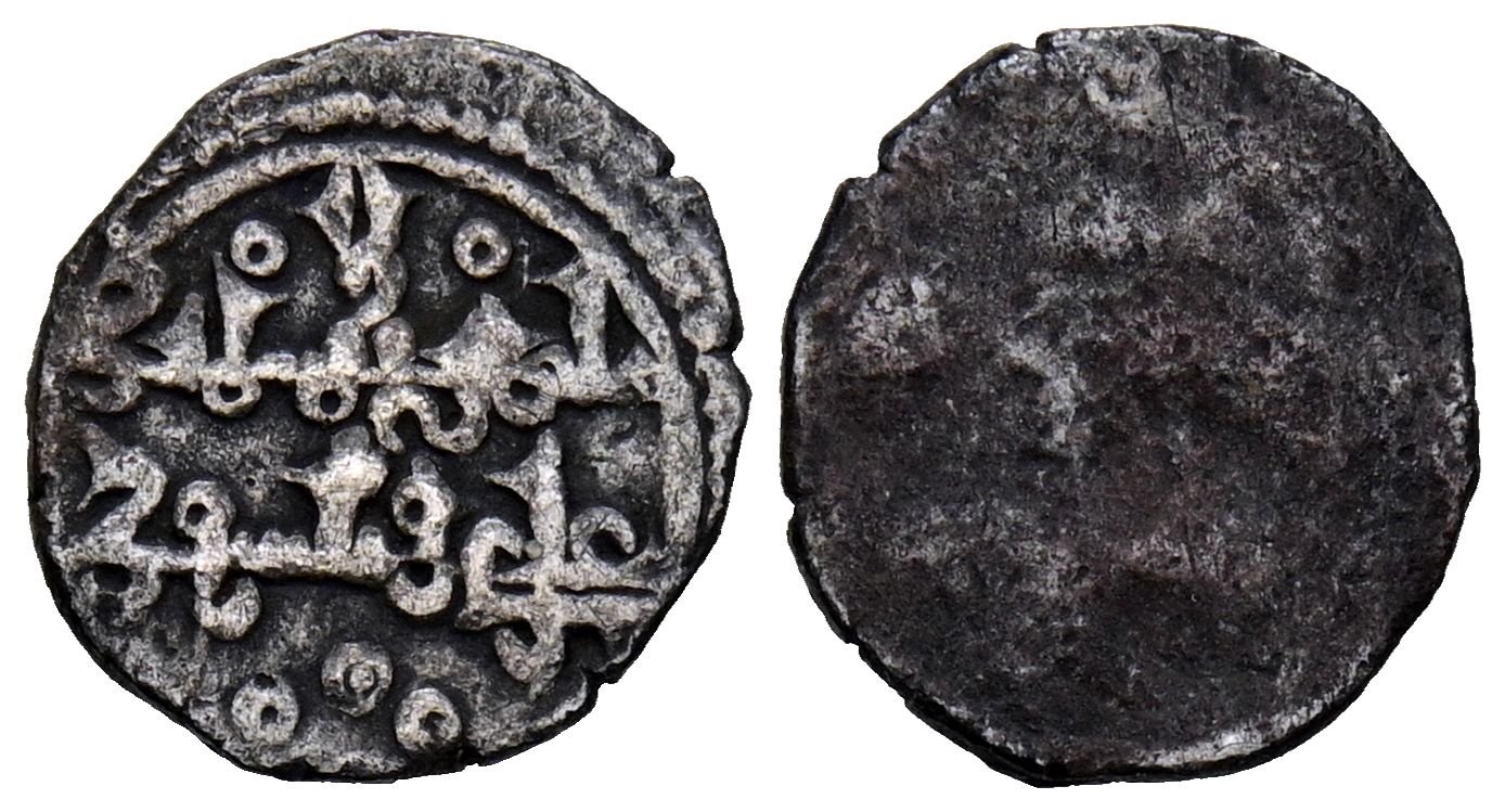 ALMORAVIDES. Alí Ibn Yusuf con el Emir Tashfin (533-537H). 1/2 Quirate. (Ar. 0,44g/10mm). S/D. (Vives no cita; Benito Ch22var). Anv: Dividido en dos líneas: امير المسلين (Amir al-Muslimin) / علي و قا شفين (Ali y Tashfin) Rev: Anepígrafo. MBC+. Pátina oscura. Interesante y raro ejemplar con caligría más elaborada.