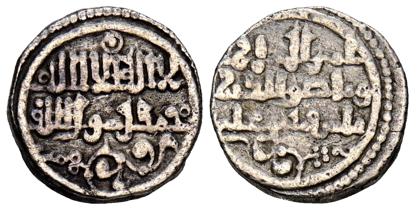 ALMORÁVIDES, Tashfin Ibn Ali (537-540H). Quirate. (Ar. 0,91g/10mm). S/D. (Vives 1881; Hazard 1021; Benito Da1). Anv: 'Shahada' en dos líneas. Rev: Presenta a Tashfin con títulos de Amir al-Muslimin y Nasir al-Din. MBC. Rara.