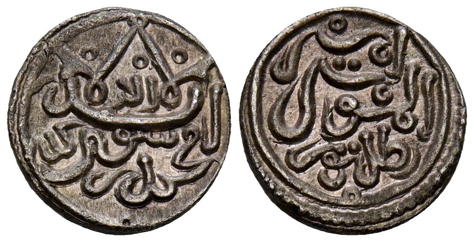 TAIFAS ALMORÁVIDES. Muhammad ibn 'Ali ibn al-Hadjam (540-545H). Quirate. (Ar. 0,95g/11mm). Batalyus (Badajóz) /بطلتوس. (Vives 1887; Benito J1). Anv: 'Sahada' en tres líneas. Rev: امير (amir)/ المؤمنين (al-Muminin)/ بطلتوس (Batalyus). SC. Muy raro y m ás en esta espectacular calidad.