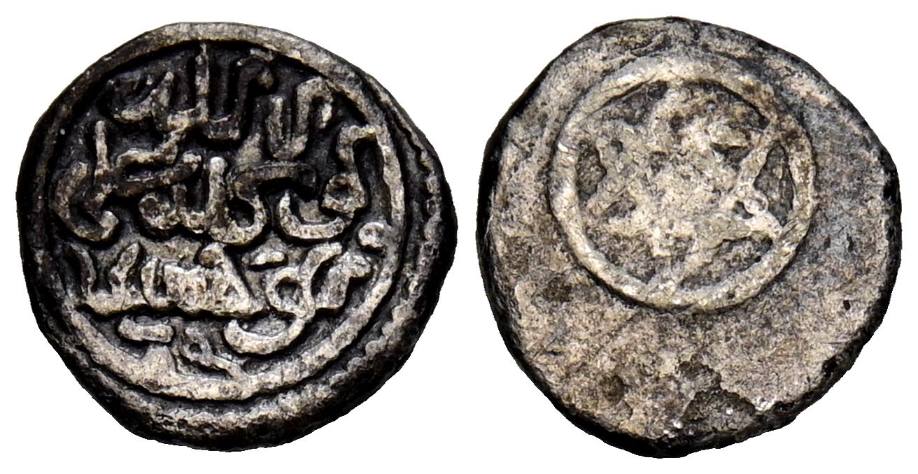 ALMORAVIDES. Anónima. 1/2 Quirate. (Ar. 0,42g/12mm). S/D. Anv: هو حسبي / توكلت على / الله (Confío en Dios, Él me basta). Rev: Sello de Salomón rodeado. EBC-/MBC. Precioso ejemplar. Pendiente de incorporación al catalogo de Benito de Mozos, hasta la f echa solo tenemos cosntancia de otros dos ejemplares más.