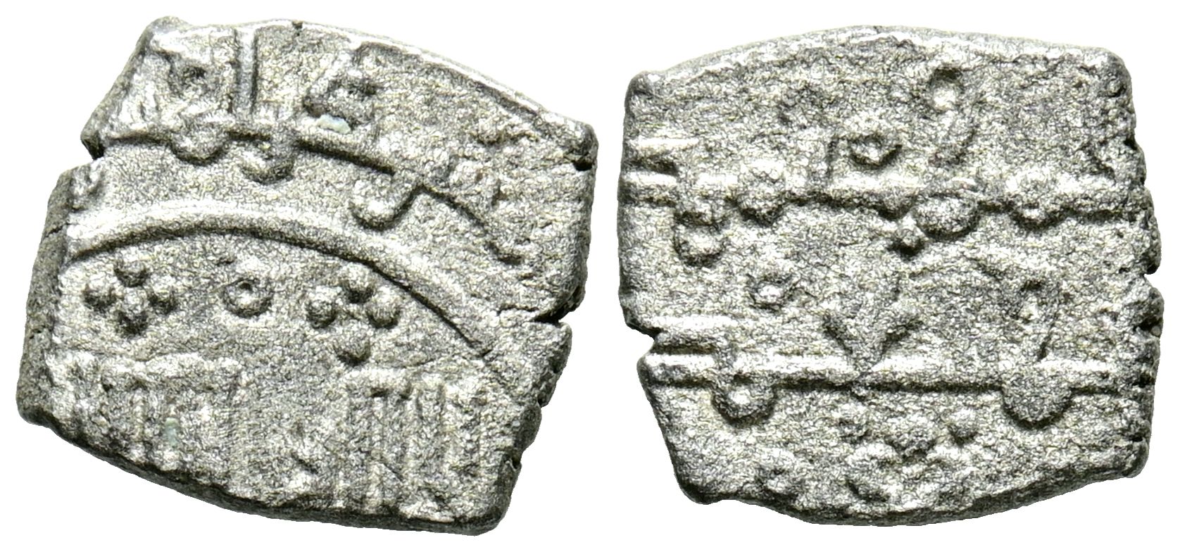 TAIFAS ALMORAVIDES. Muhammad ibn Sad (Ibn Mardanish) (542-567H). Dirham fraccionario. (Ve. 1.00g/11mm). S/D. Posiblemente Valencia. (Francés 374 y Acta Numismática 39). MBC+. Precioso y raro ejemplar.