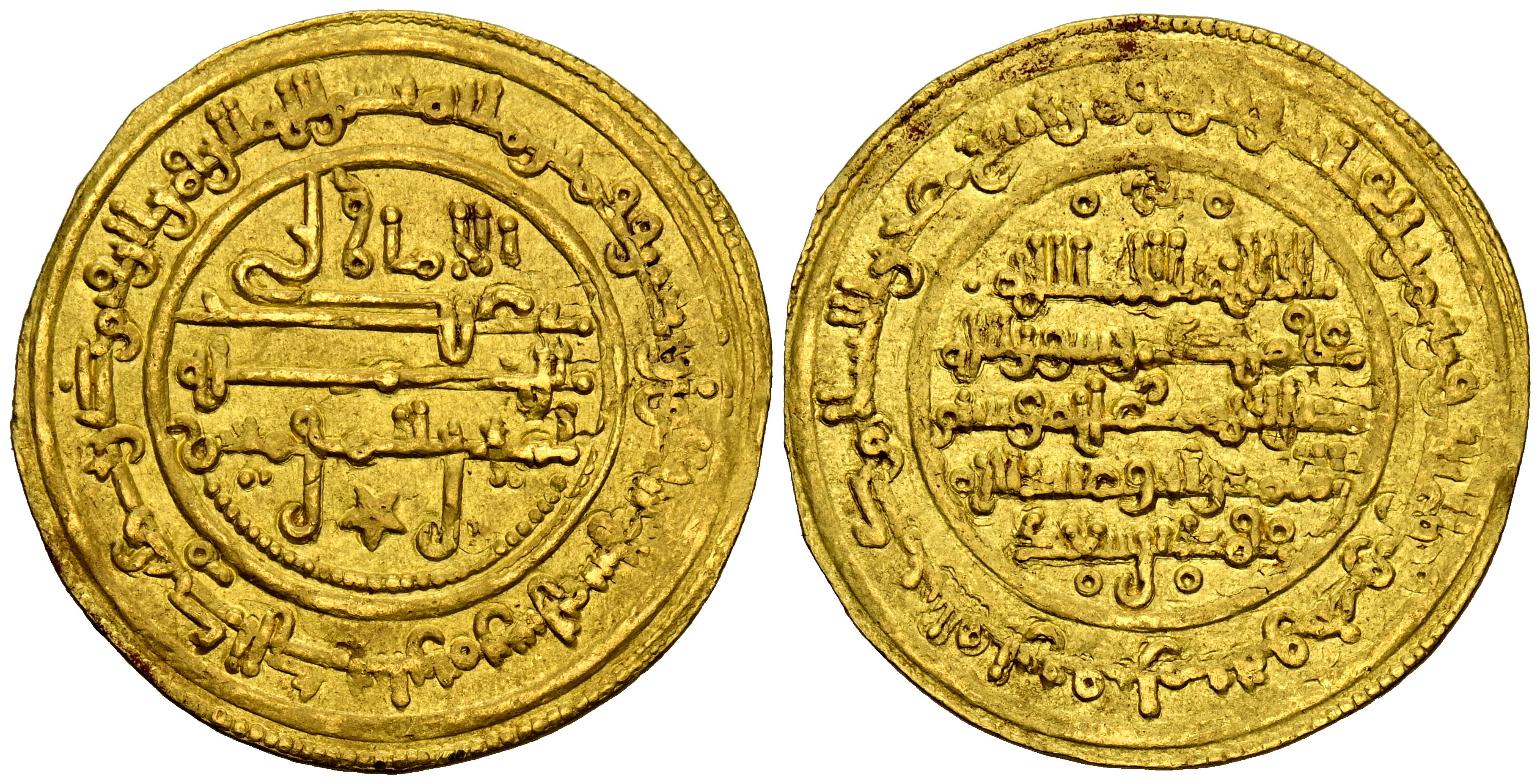 TAIFAS ALMORAVIDES. Muhammad ibn Sad (Ibn Mardanish). Mursiya / مرسية (Murcia). Dinar. (Au. 3,86g/26mm). 547H. (Vives no cita). La IIA pertenece al Vives 1933 y la IA al Vives 1940. MBC+. Leve repinte. Según nuestras fuentes este ejemplar es inédito. Ex coleción Silda.