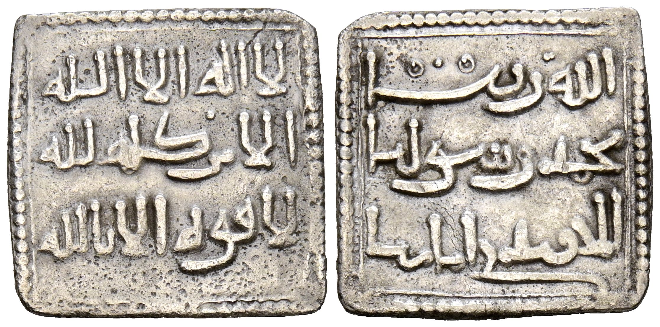 ALMOHADES, Anónimo a nombre de Al-Mahdi. Dirham. (Ar. 1,49g/15mm). S/D. (Álbum 496a; Hohertz 574). Escritura cúfica. MBC. Porosidad