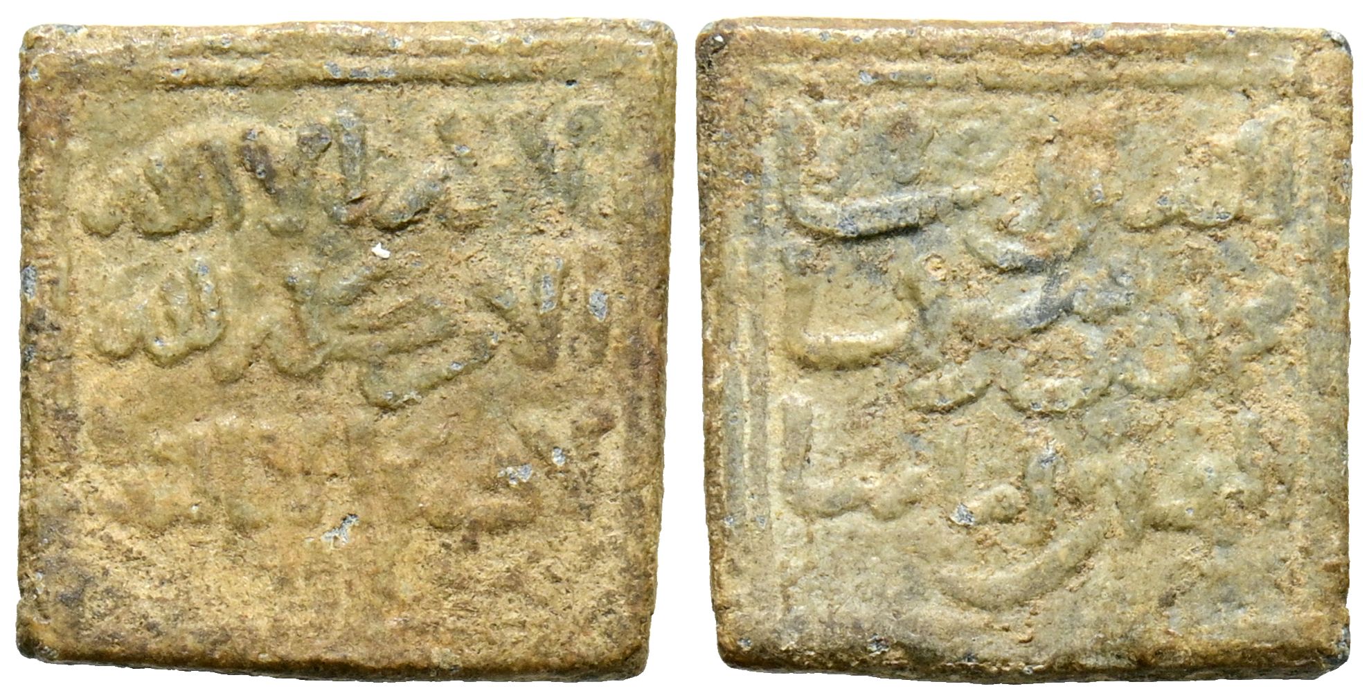 ALMOHADES. Anónimo a nombre del imán Al-Mahdi. Dirham. (Pb. 2,91g/14mm). S/D. (Vives 2107; Hazard 1095). MBC+. Interesante y rara acuñación en plomo de ultilidad incierta, posiblemente como amuleto o falsificación de época.
