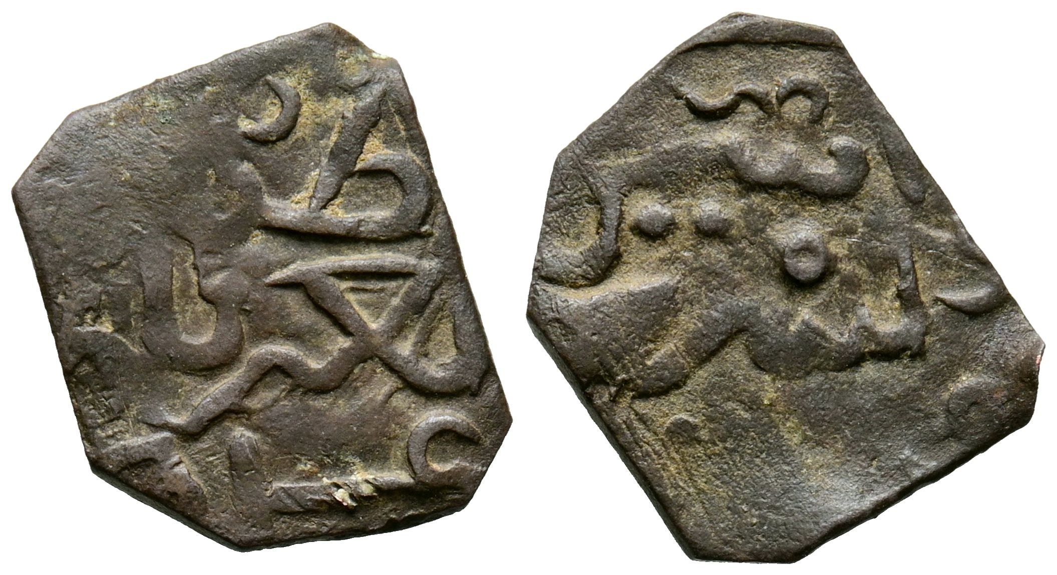NAZARÍES DE GRANADA, Anónimo. Felús. (Ae. 0,85g/14mm). 892H. Bi-Gharnata / بــغرناطة. (Vives 2224; Hohertz 789a). MBC. Cospel reducido. Escasa.