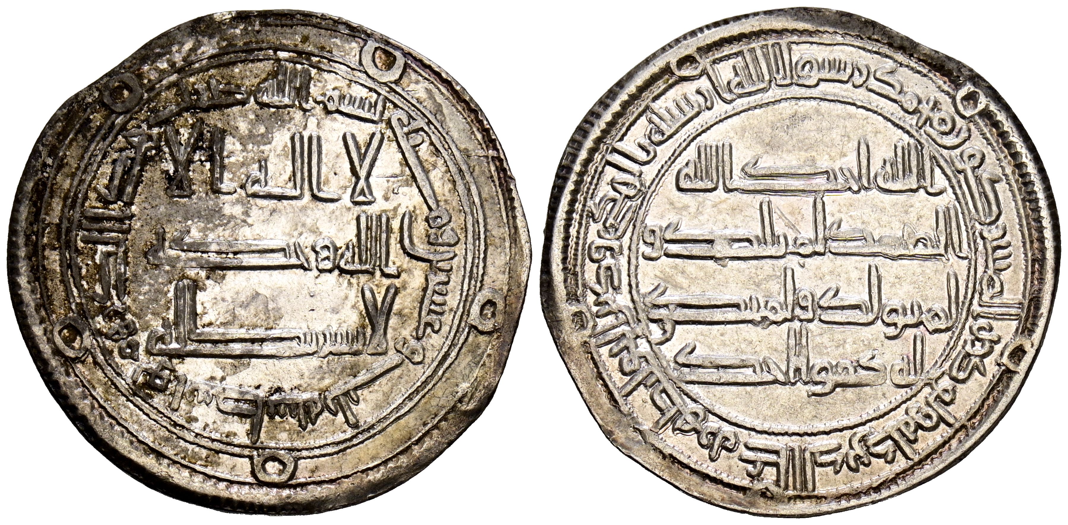 CALIFATO OMEYA DE DAMASCO, Hisham Ibn Abd al-Malik. Dirham. (Ar. 2,91g/25mm). 123H. Wasit / واسط. (Album 137; Walker 574; Klat 716). MBC+. Brillo original con oxidación parcial en averso.