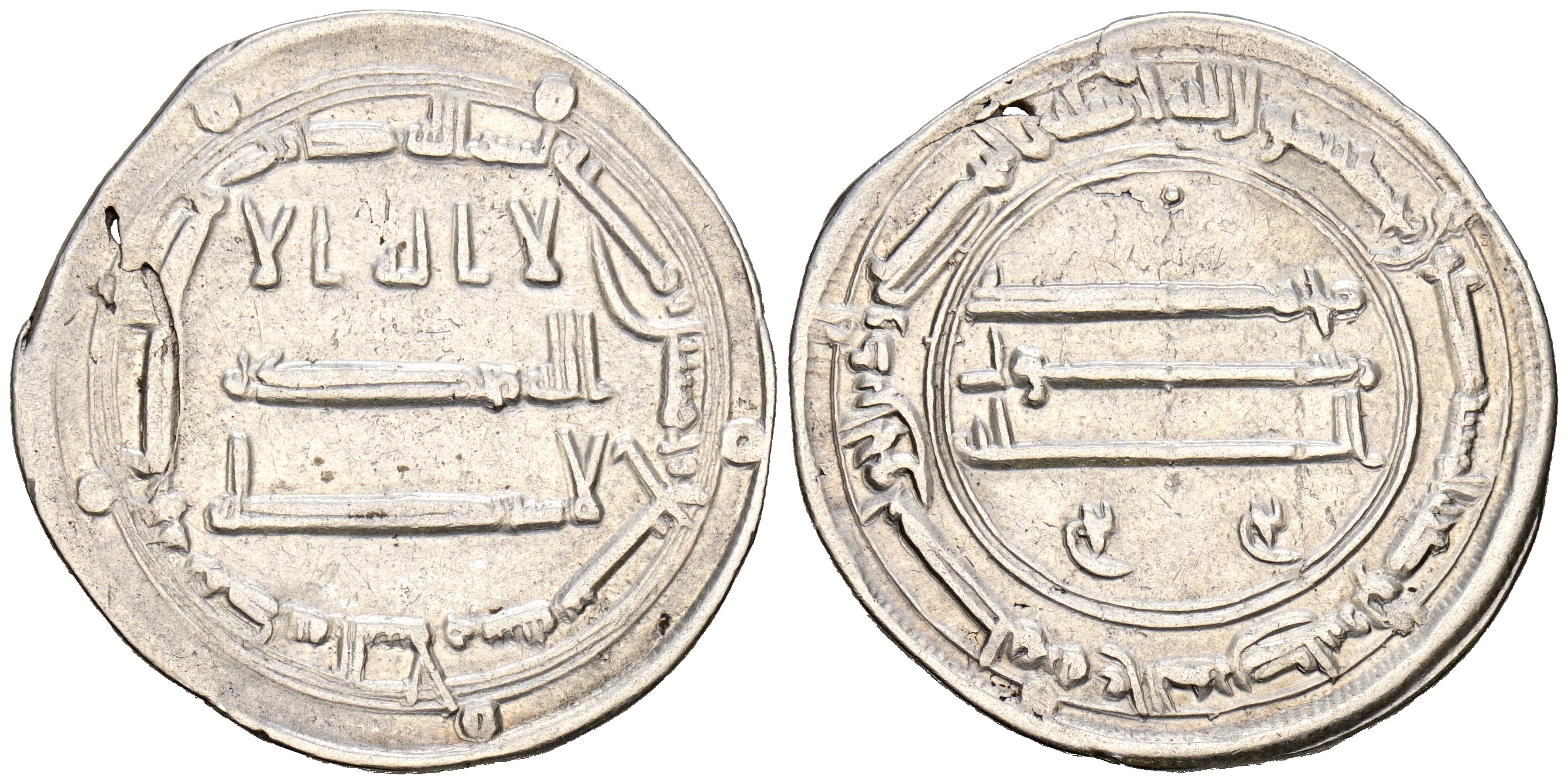 CALIFATO ABASIDA. al-Mansur. Dirham. (Ar. 2,85g/25mm). 157H. al-Salam /السلام. (Álbum 213.1; Lowick 1198). Citando a el Visir Ja'far ibn Yahya al-Barmaki en IIA. MBC. Grieta interna de acuñación.