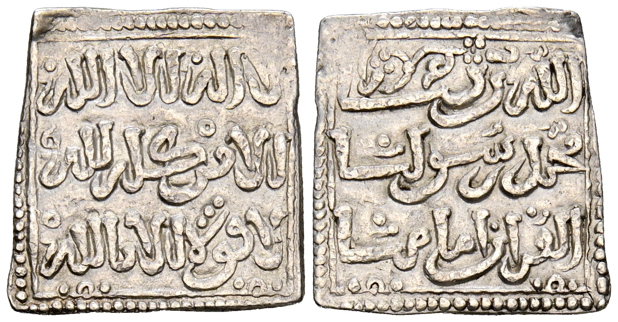 ANTI-ALMOHADES MERINÍES, Anónima. Dirham. (Ar. 0,90g/14mm). S/D. (Hohertz 835; Medina 205). En la última línea de la IIA. aparece en lugar de Al-Mahdi, la mención al Corán: القران امامنا ('El Corán es nuestro Iman'). MBC+. Preciso y escaso ejemplar.