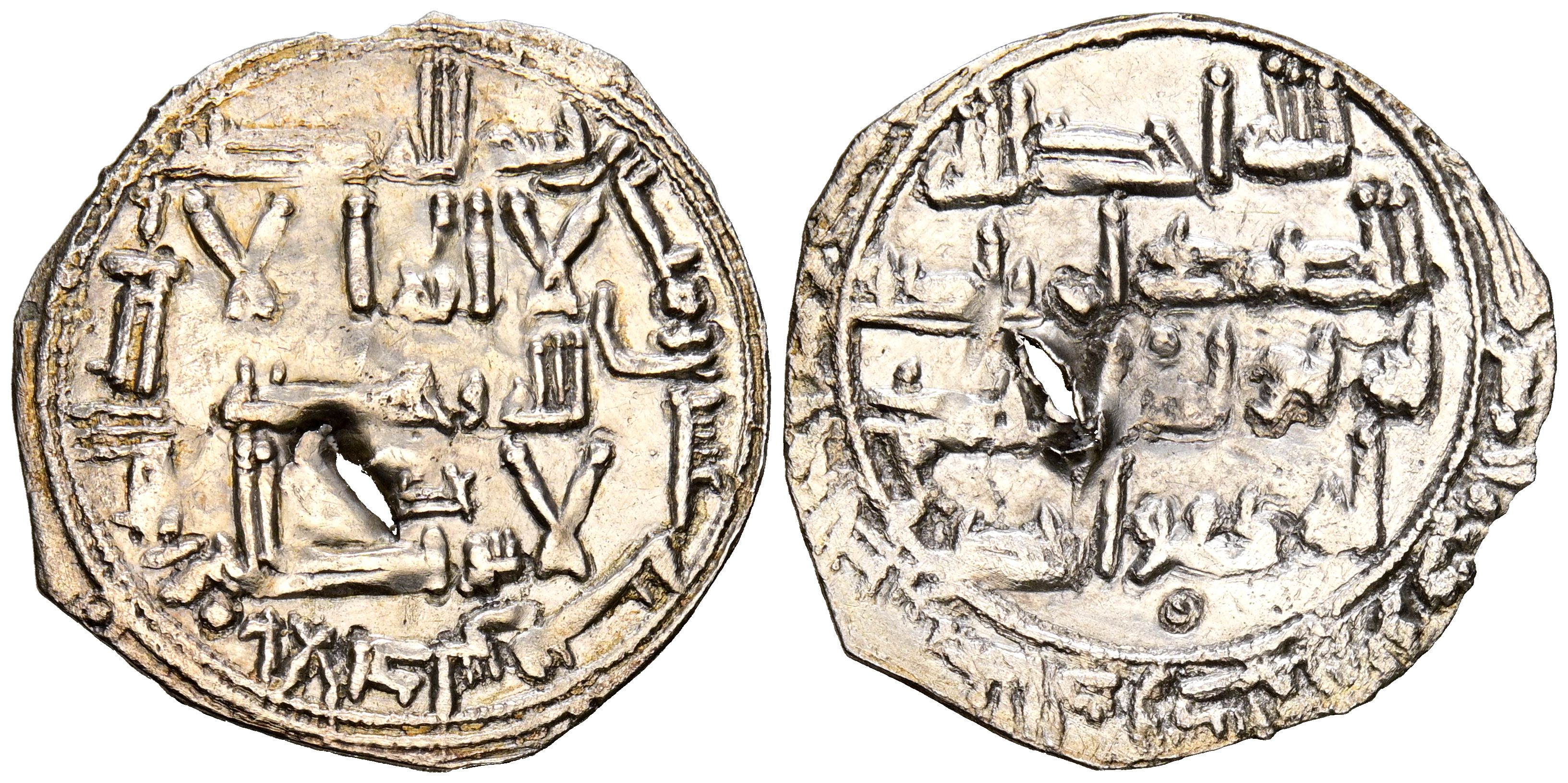 EMIRATO INDEPENDIENTE DE CÓRDOBA. Abd al-Rahman II. Dirham. (Ar. 1,62g/23mm). 220H. al-Ándalus / الاندلس. (Vives 157; Frochoso 220.7). MBC-. Perforación para añadido de peso.