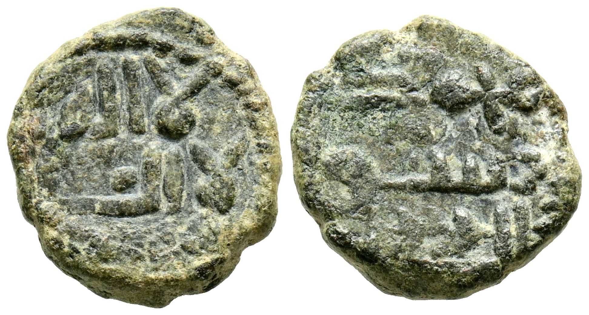 EMIRATO DEPENDIENTE DE CÓRDOBA, PERIODO DE GOBERNADORES. Anónimo. Felús. (Ae. 1,99g/13mm). S/D. (Frochoso VI-c). Anv: لاالله/ لااله ا con adornos serpenteante. Rev: الله/ رسول / محمد con adorno en forma de palma entrela 2º y 3º línea. MBC.