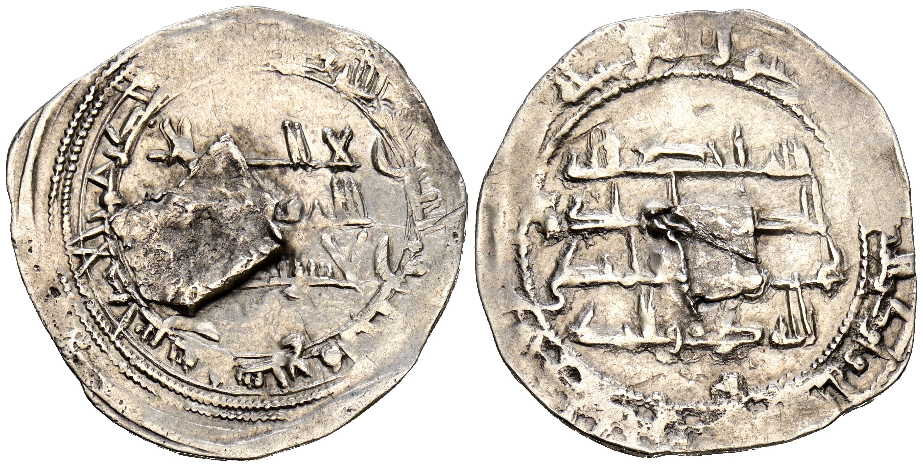 EMIRATO DEPENDIENTE DE CÓRDOBA. Muhammad I. Dirham. (Ar. 2,89g/26mm). 247H. al-Ándalus / الاندلس. (Vives 255; Frochoso 247.5). MBC-. Perforación con remache.