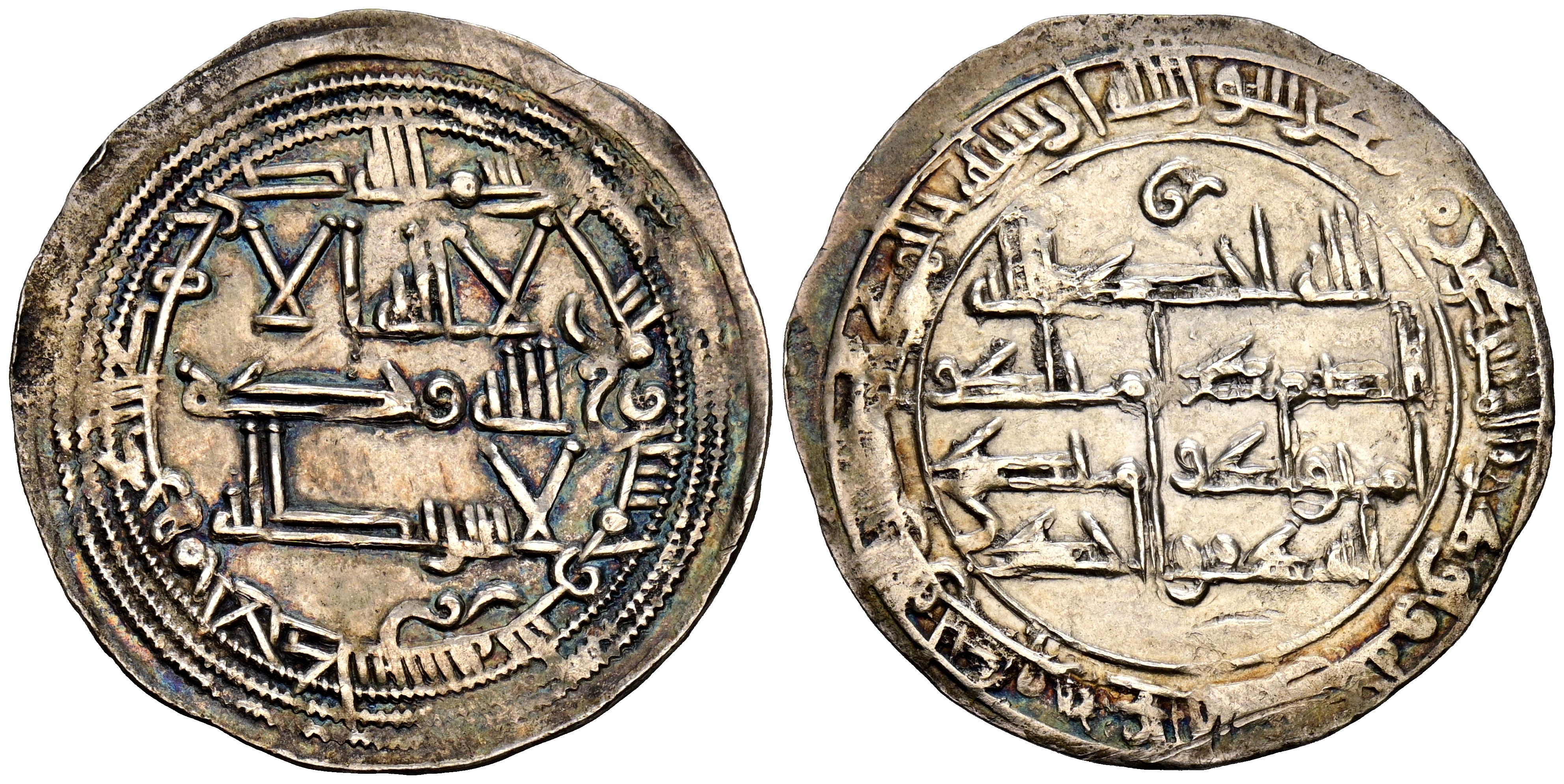 EMIRATO INDEPENDIENTE DE CÓRDOBA, Muhammad I. Dirham. (Ar. 2,58g/28mm). 253H. al-Ándalus / الاندلس. (Vives 266; Frochoso 253.4). EBC-. Pátina antigua de monetario. Excelente ejemplar.