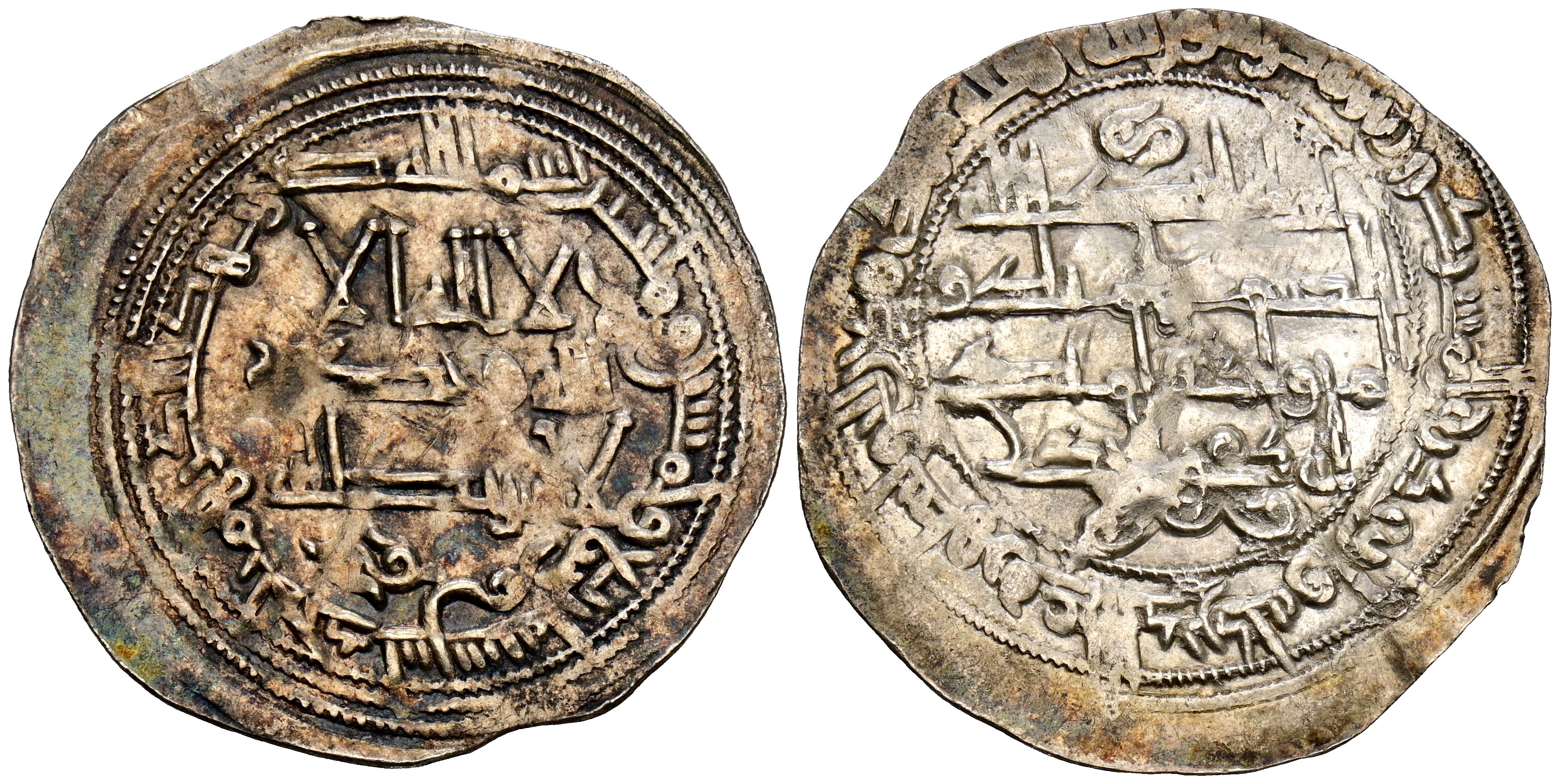 EMIRATO INDEPENDIENTE DE CÓRDOBA, Muhammad I. Dirham. (Ar. 2,62g/30mm). 254H. al-Ándalus / الاندلس. (Vives 268; Frochoso no cita esta combinación de adornos). MBC+. Módulo grande y pátina antigua de monetario.