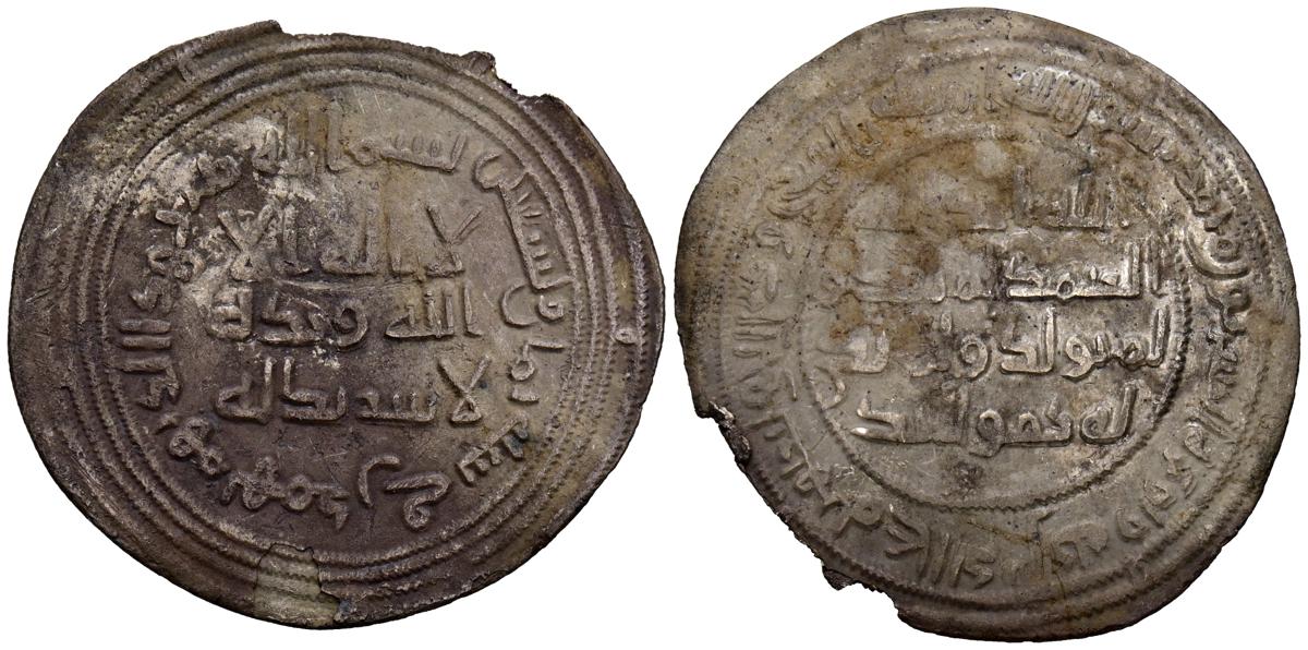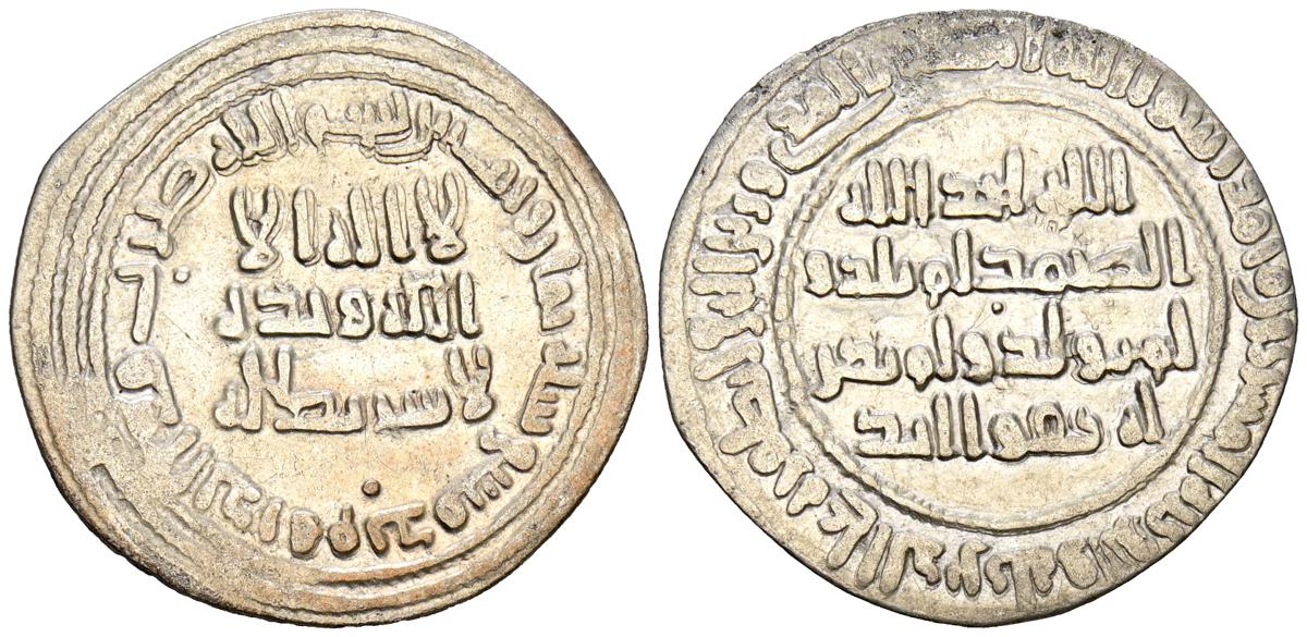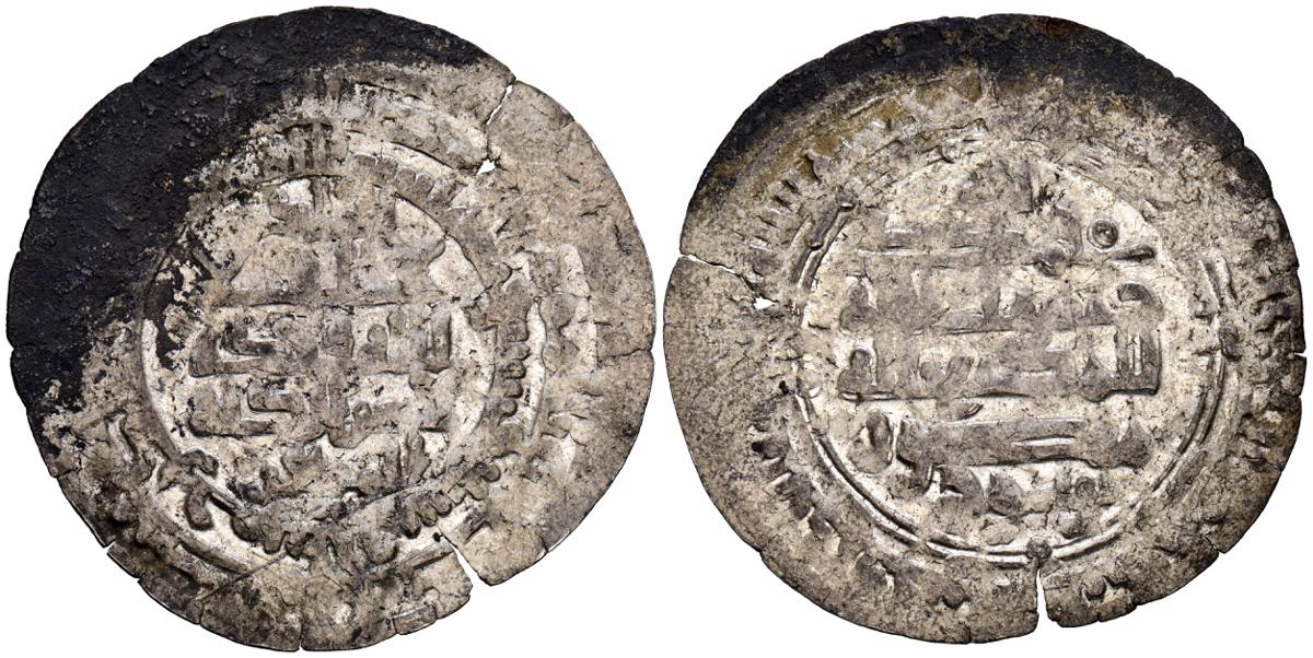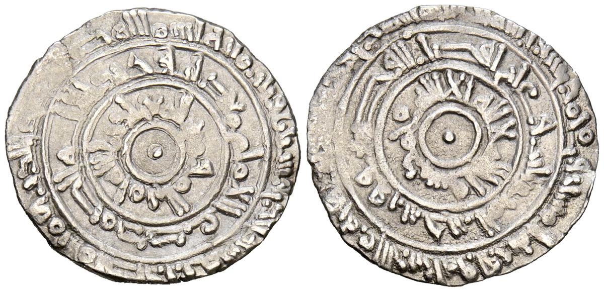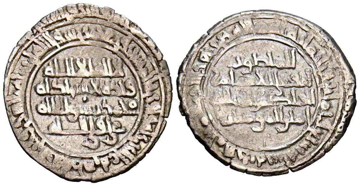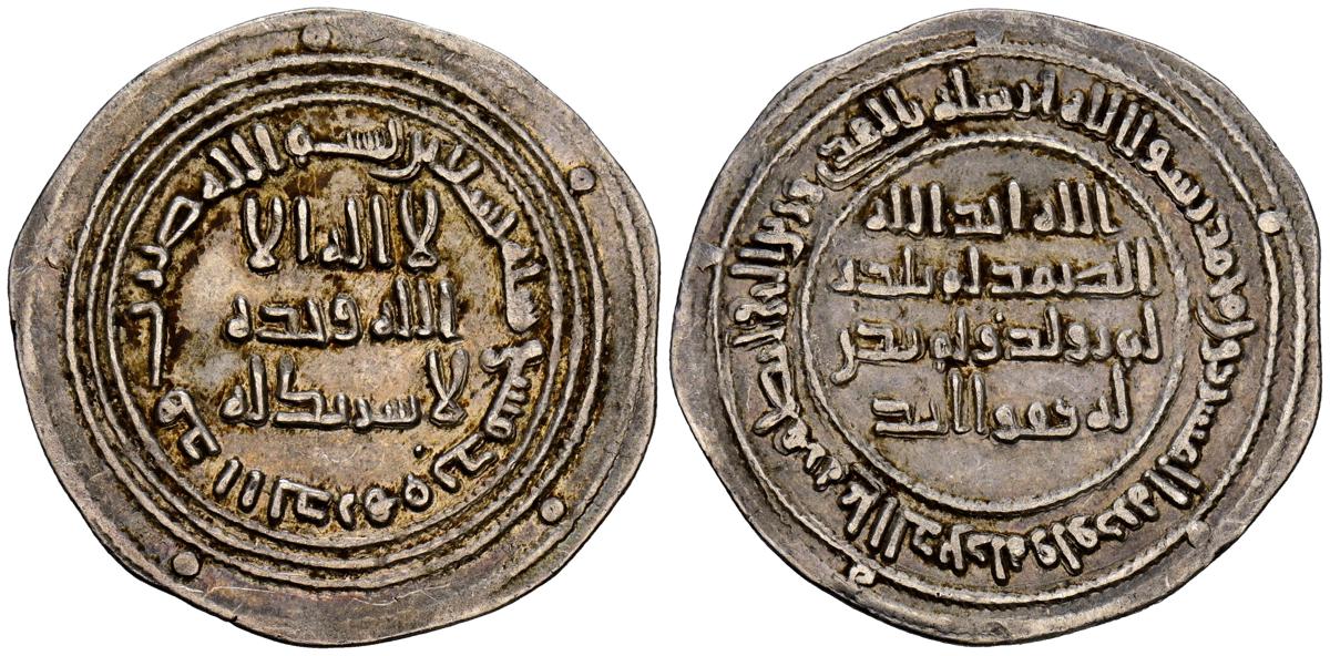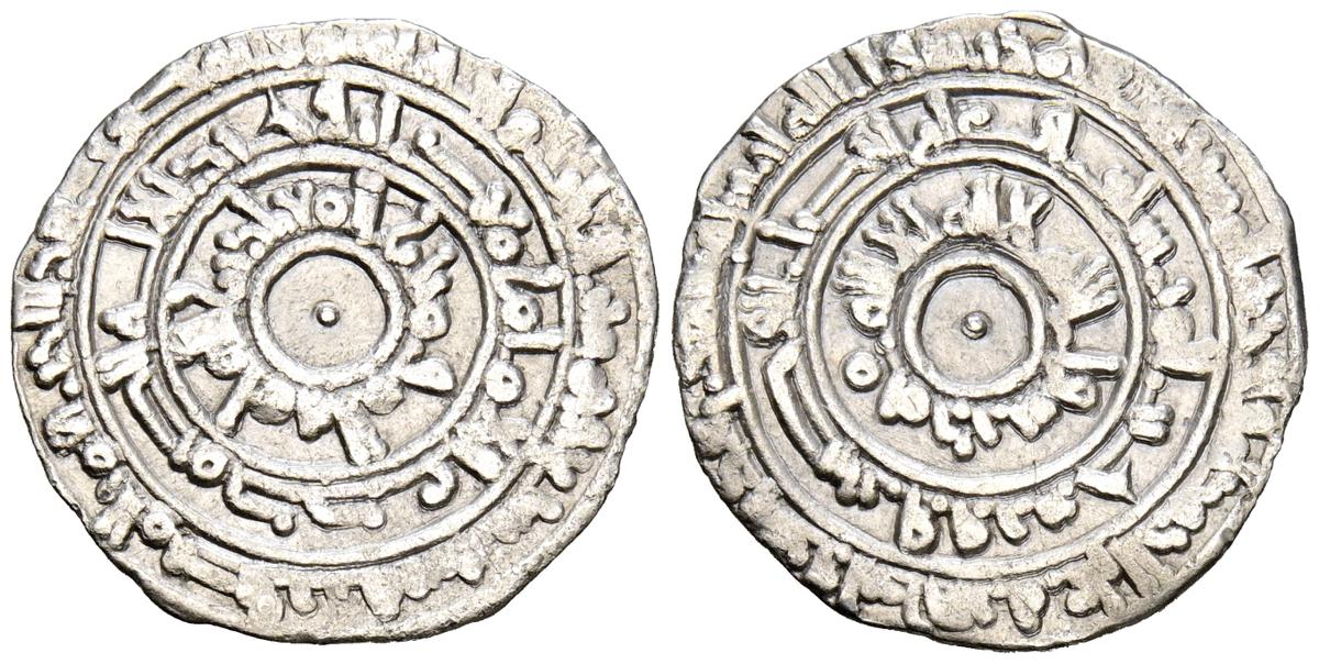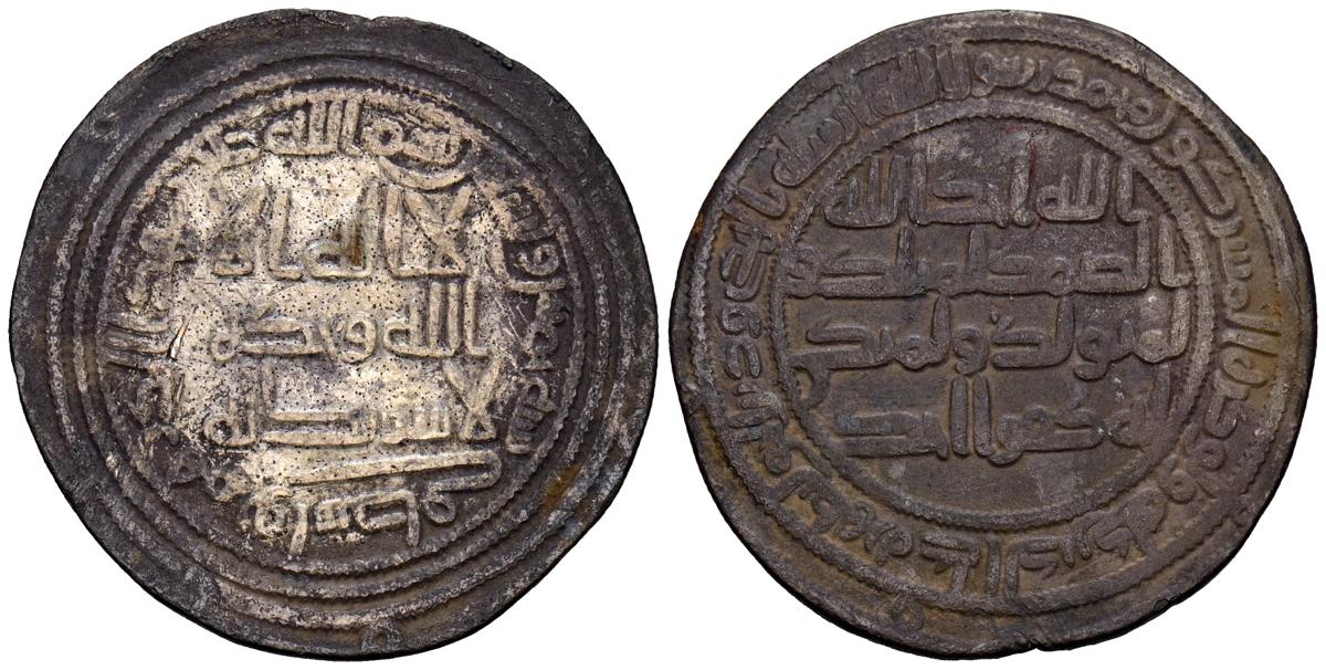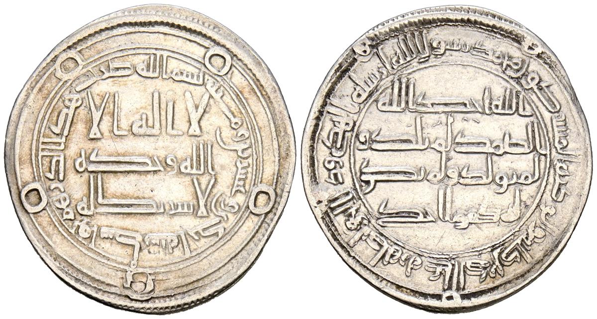 CALIFATO ABASIDA, Anónimo. Dirham Tabarí. (Ar. 1,97g/23mm). 125 PYE/160H/776-7 d.C. Tabaristán. (Álbum73). Anv: Busto con corona alada mirando a derecha de tipo sasánida, leyenda en palavhi: a la derecha, ABZUD (Crecimiento) y a la izquierda, GDH (Explendor). En el exterior, a las 2h, 6h y 10h, creciente y estrella. Abajo a la derecha la palabra palavhi: ADB (Excelente) y a izquierda NEK (Bueno). Rev: Altar de fuego flanqueado por dos sacerdotes, a la derecha: Tapurstan (Tabaristán), y a izquierda año de acuñación: 125 PYE (Post Yazgard Era) dentro de 3 orlas, en el exterior, a las 12h, 3h, 6h y 9h creciente y estrella, y en medio de estos adornos 3 puntos en forma de triángulo. MBC.