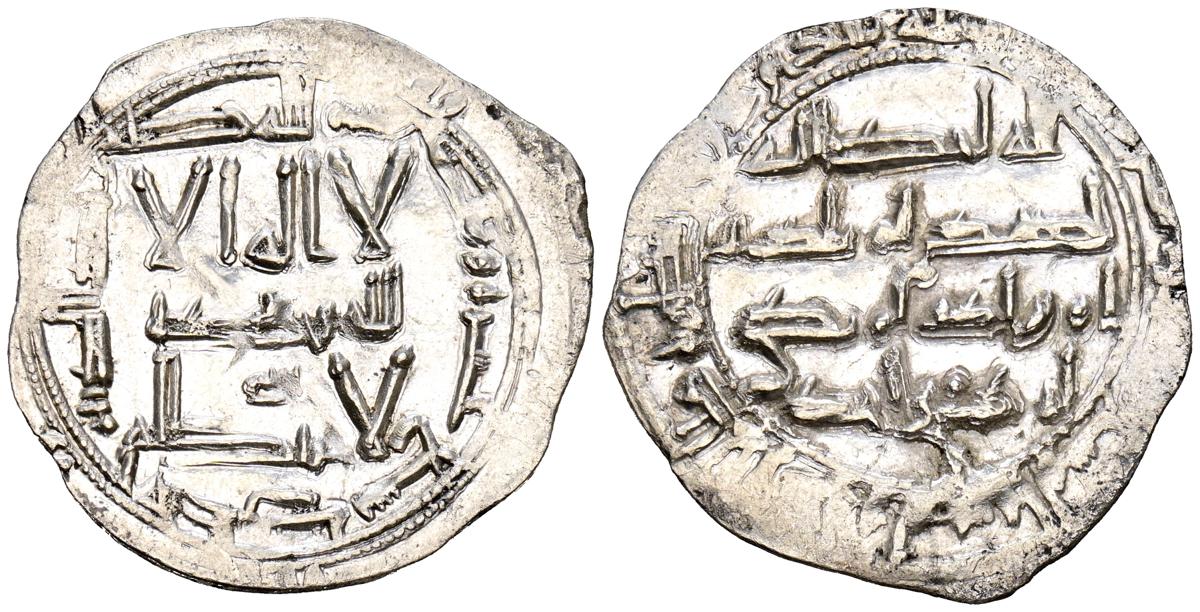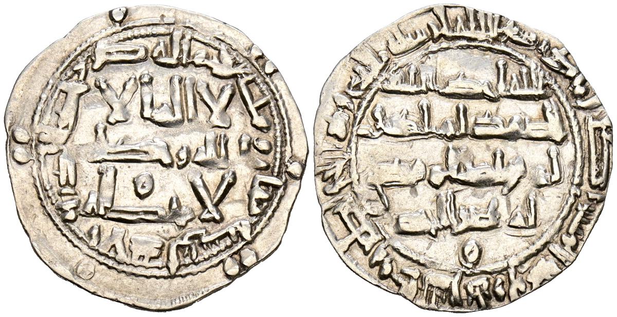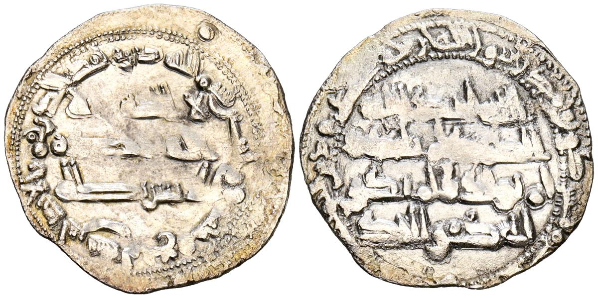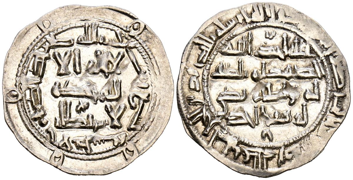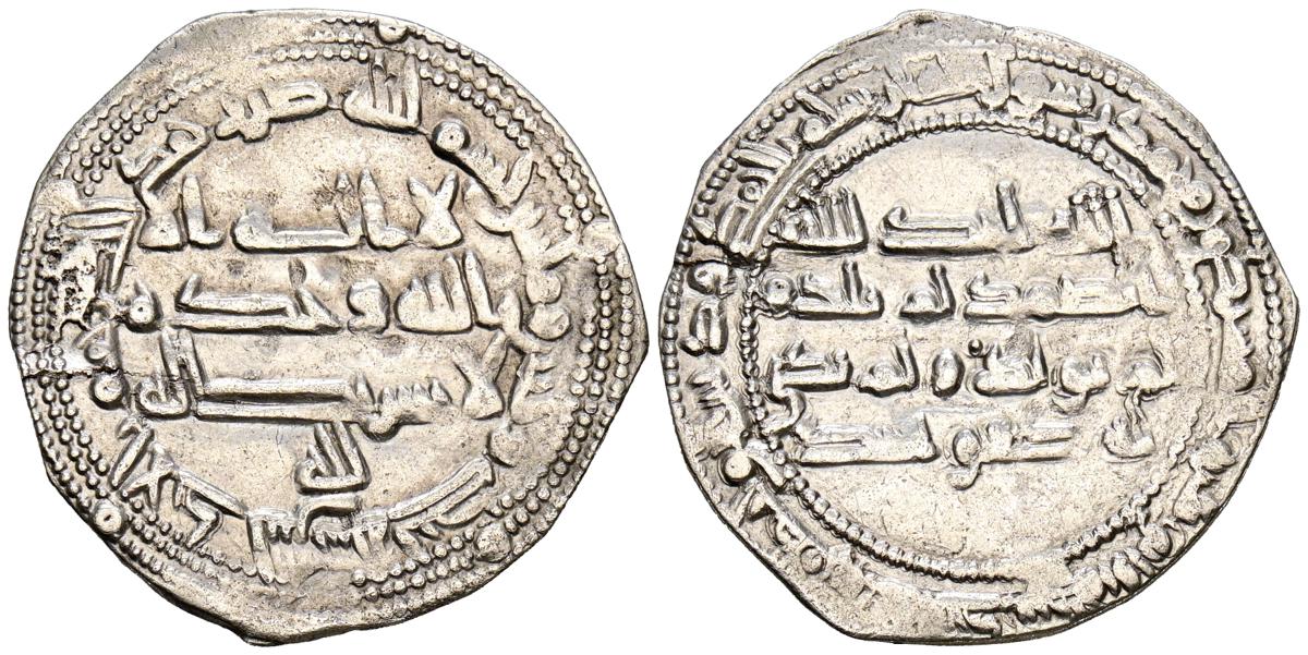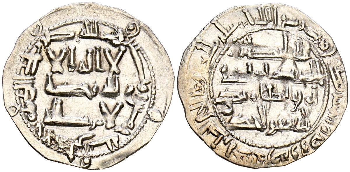 EMIRATO DEPENDIENTE DE CÓRDOBA. 'Abd al-Rahman II. Dirham. (Ar. 2,62g/28mm). 210H. al-Ándalus / الاندلس. (Vives 129; Frochoso 210.4). EBC-. Limpiada. Escasa.