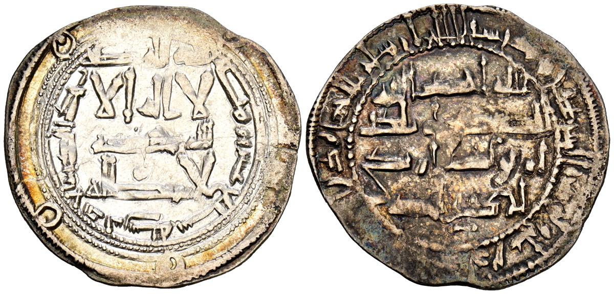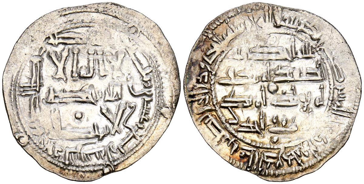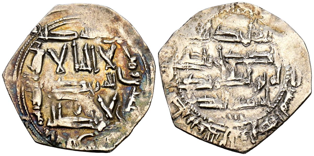 EMIRATO INDEPENDIENTE DE CÓRDOBA, Muhammad I. Dirham. (Ar. 2,58g/28mm). 253H. al-Ándalus / الاندلس. (Vives 266; Frochoso 253.4). EBC-. Pátina antigua de monetario. Excelente ejemplar.