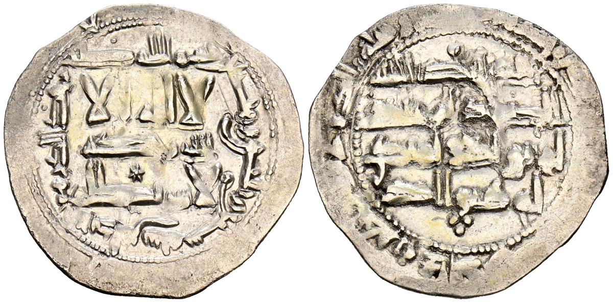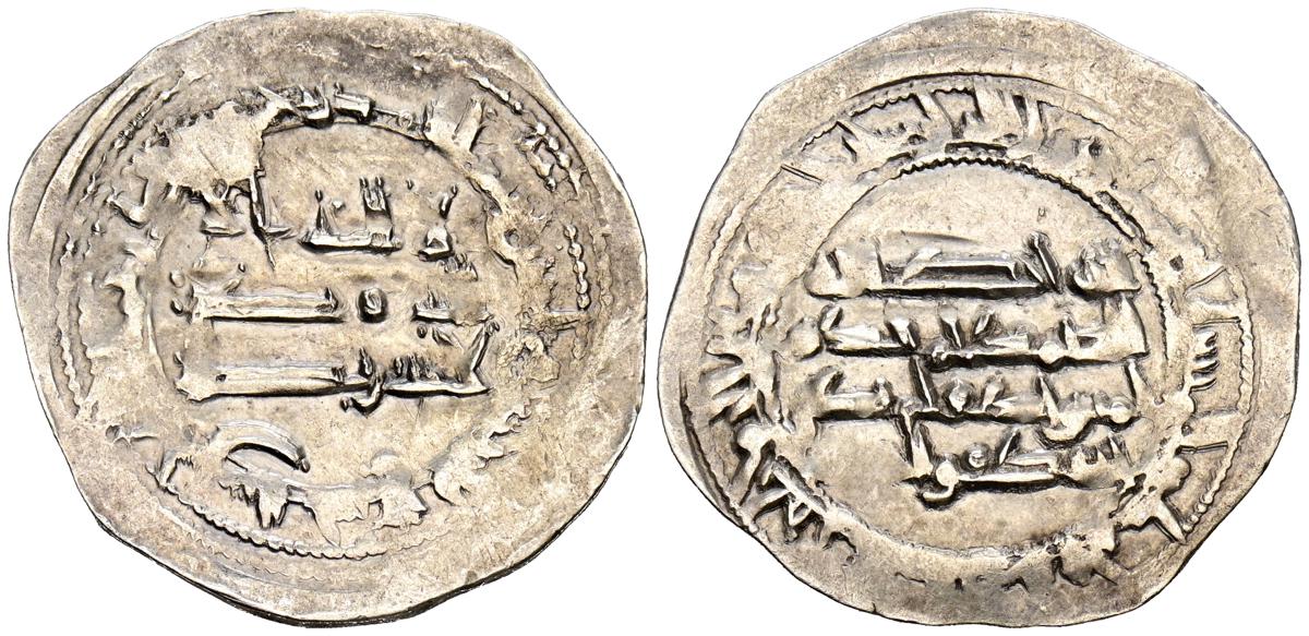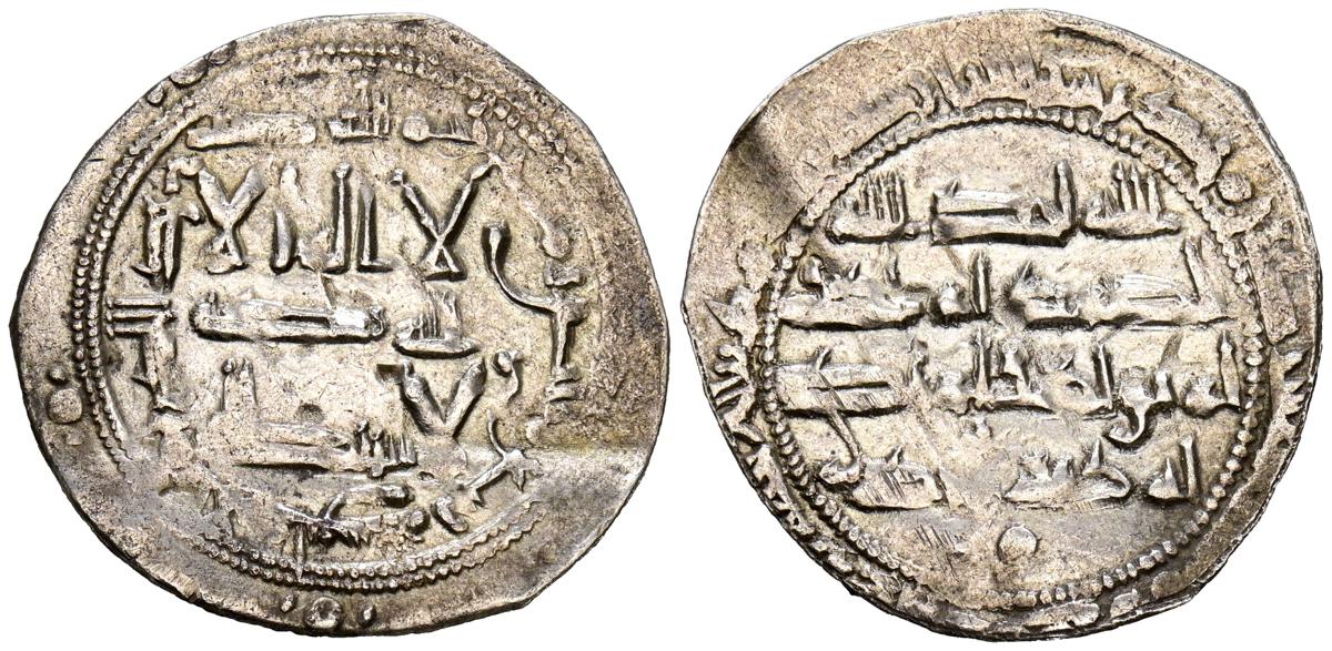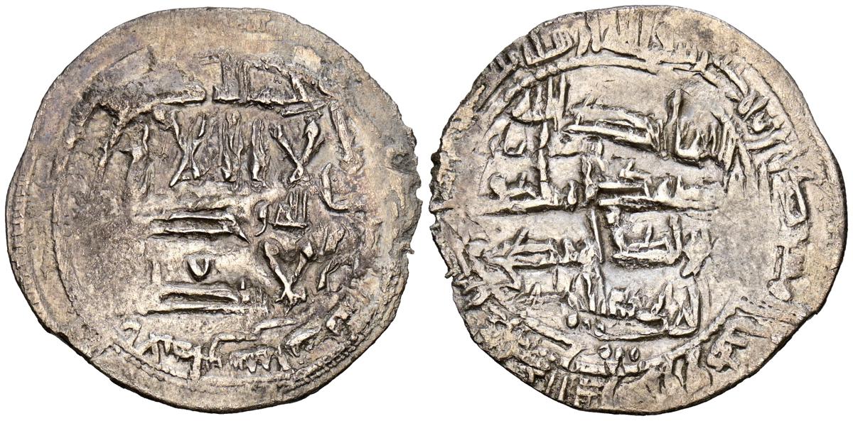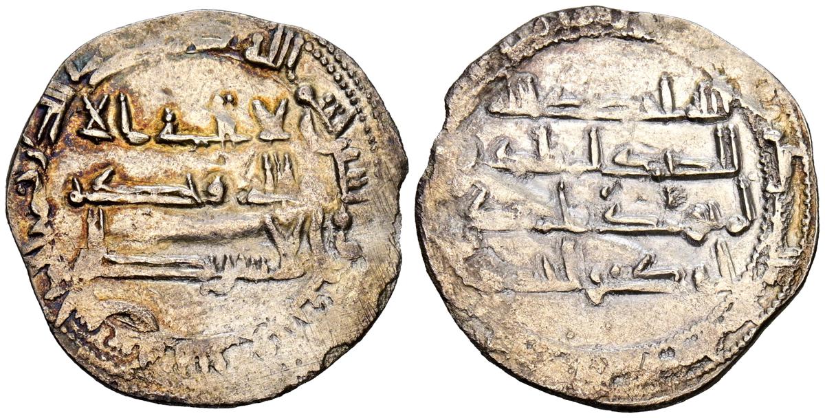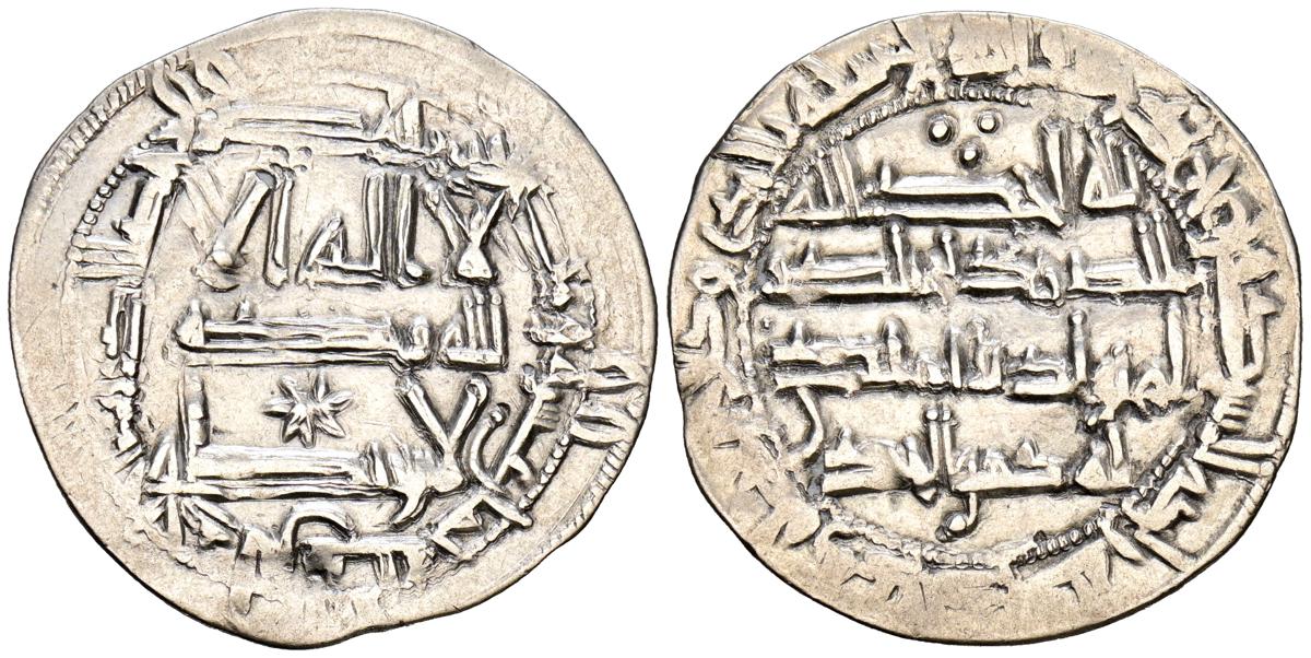 EMIRATO INDEPENDIENTE DE CÓRDOBA. Abd al-Rahman II. Dirham. (Ar. 2,68g/26mm). 207H. al-Ándalus / الاندلس. (Vives 123; Frochoso 207.1). MBC+. Restos de brillo original y tono de monetario en anverso. Muy escasa.