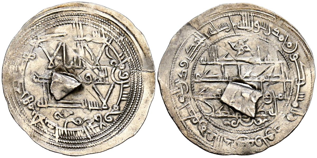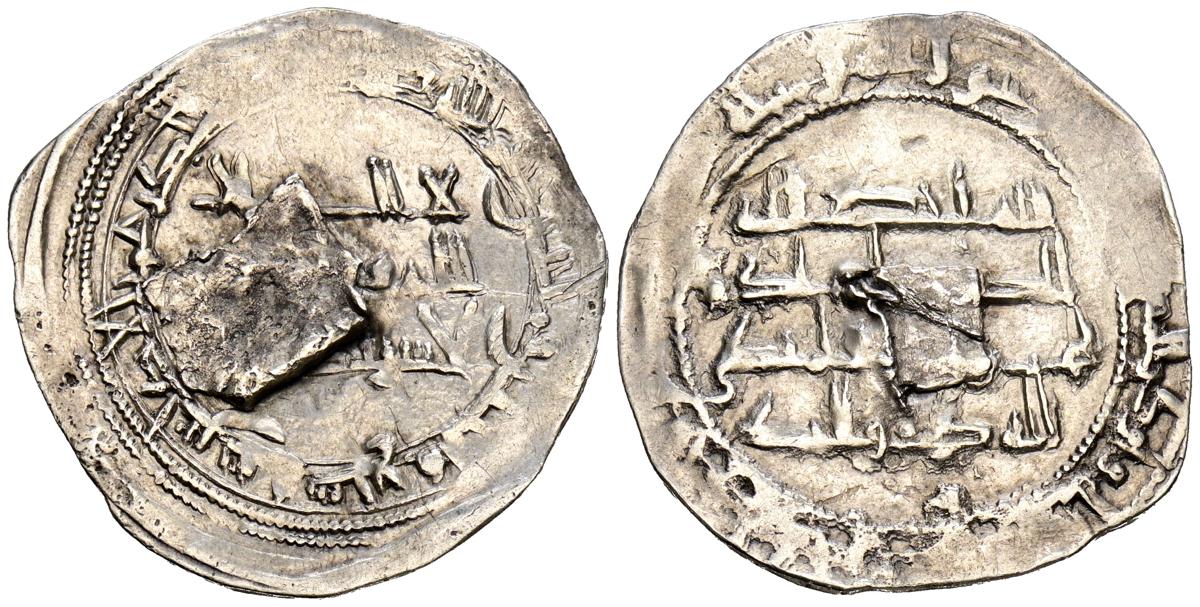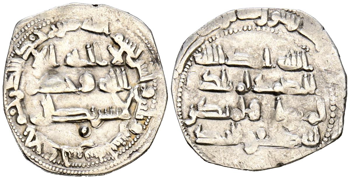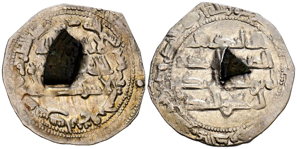 EMIRATO INDEPENDIENTE DE CÓRDOBA, Abd al-Rahman II. Dirham. (Ar. 2,52g/25 mm). 234H. al-Ándalus. (Vives 204; Frochoso 234.1). MBC. Curioso ejemplar con añadido de peso de un dirham falso de época.